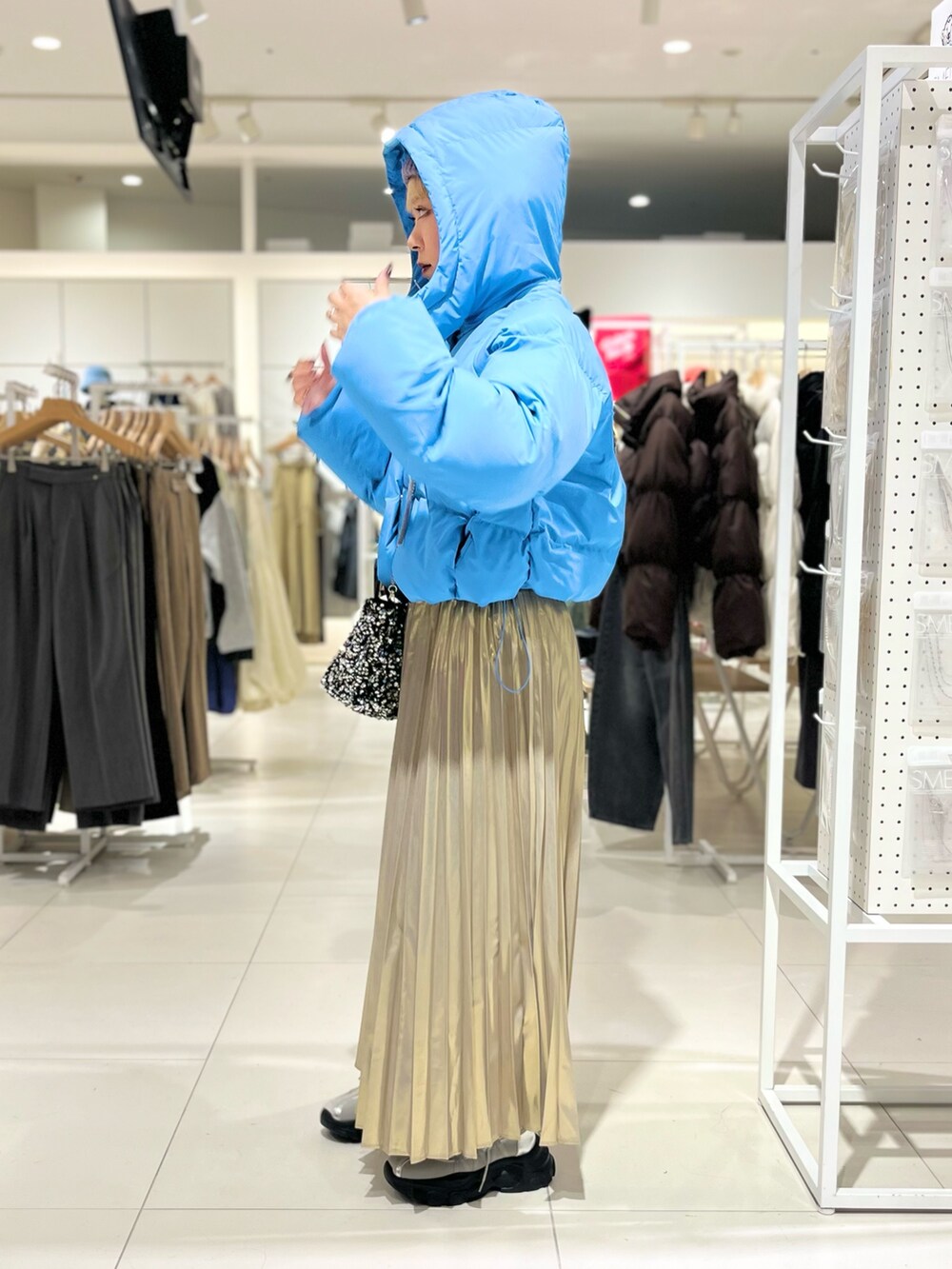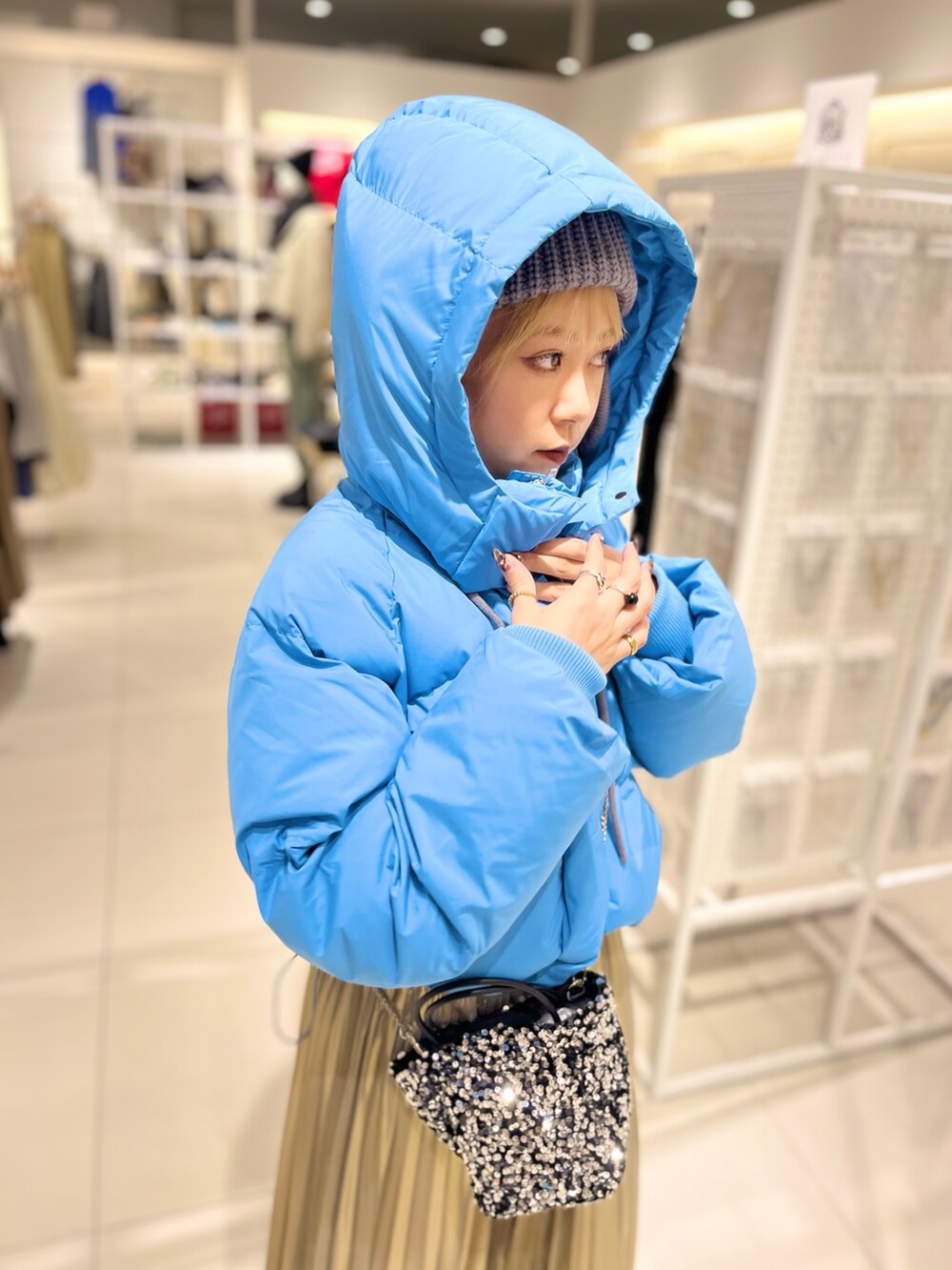 ダウンは軽くて暖かく、裾もドローコード付きなのでシルエットも楽しめます🎄🩵