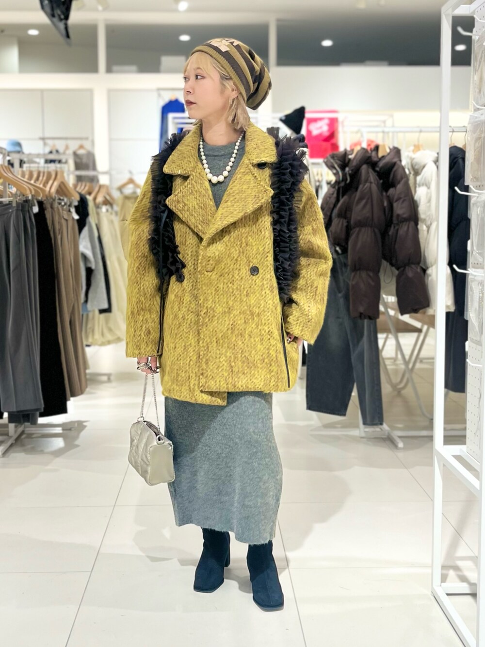 シンプルなニットワンピはチュールベストが華やかにしてくれます🙆🏼✨