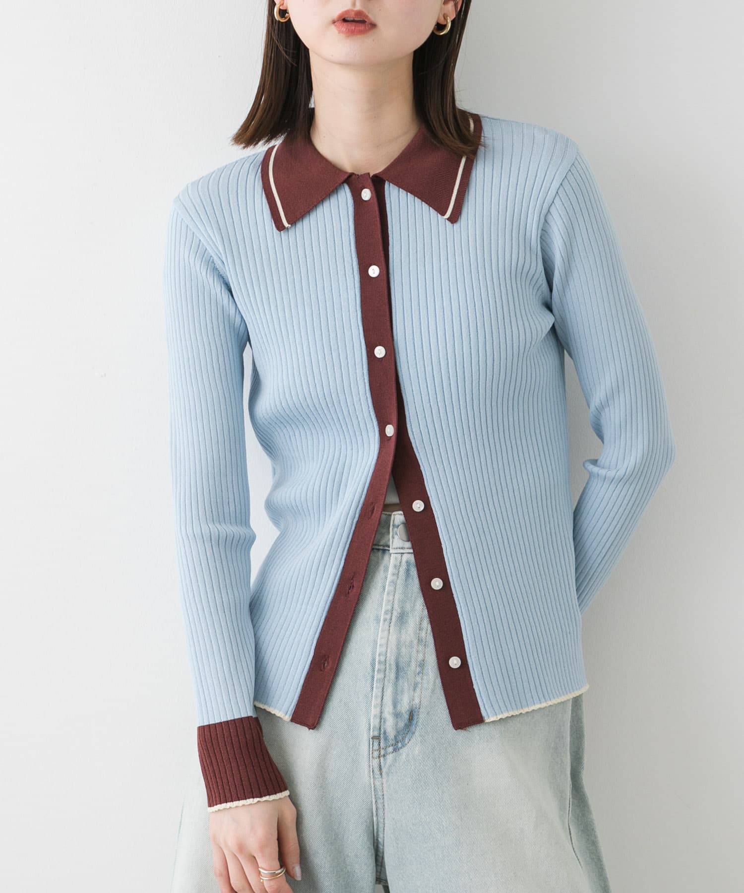 SENSE OF PLACEバイカラーエリツキコンパクトカーディガン