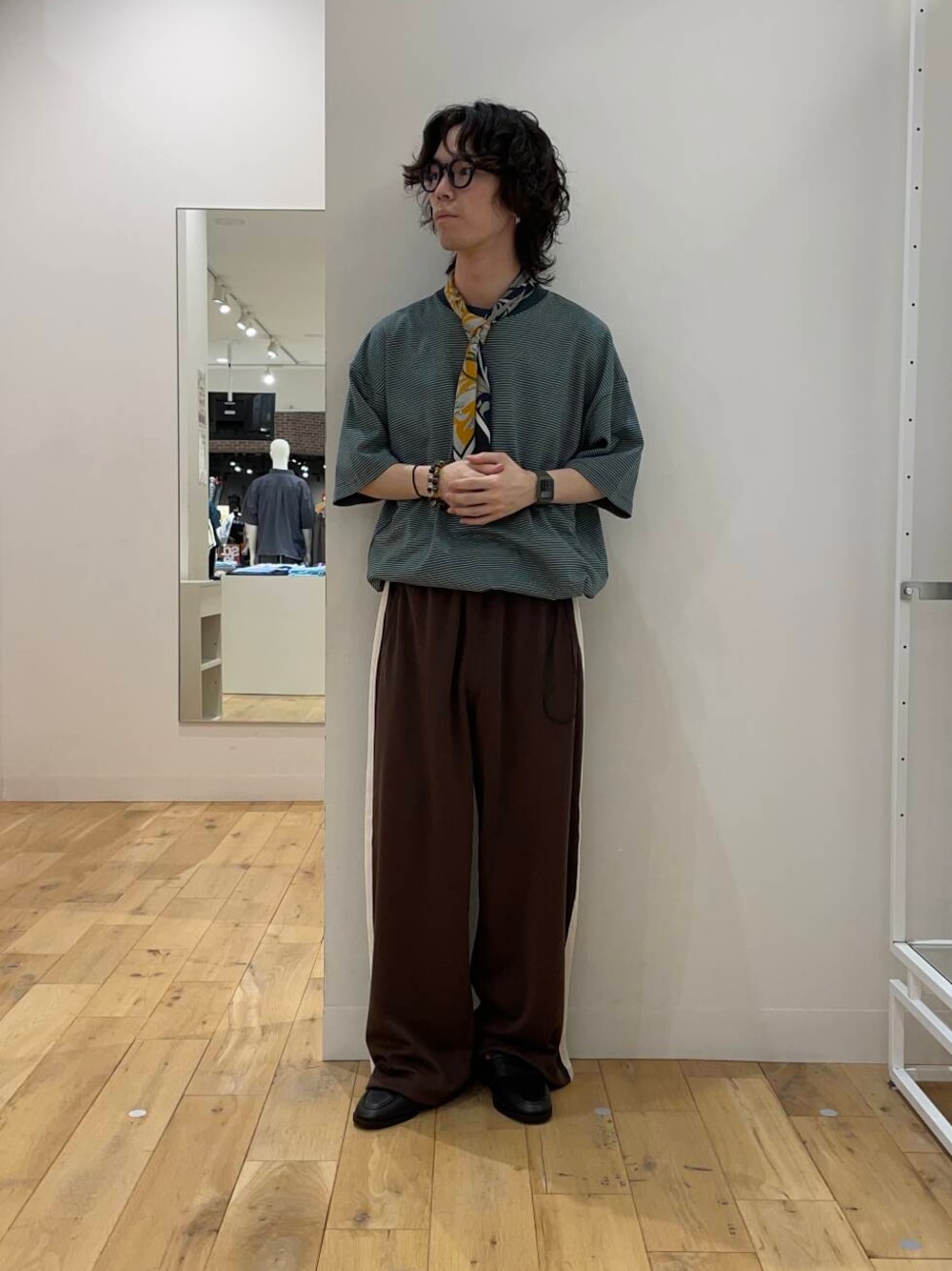 どちらも秋らしいカラーで落ち着いた雰囲気に。Tシャツはドローコードが付いているのでシルエットの変化も楽しめます。