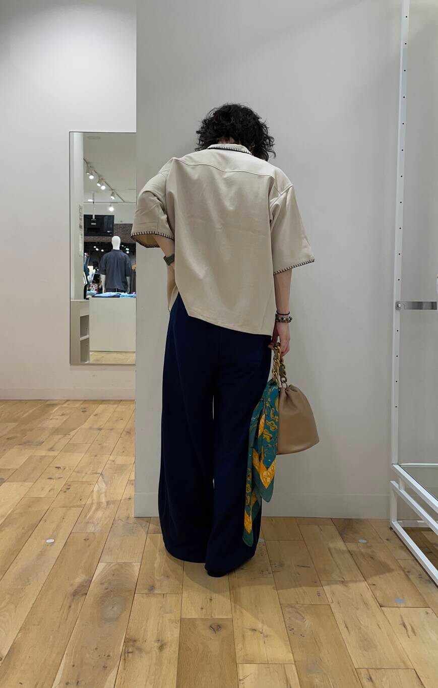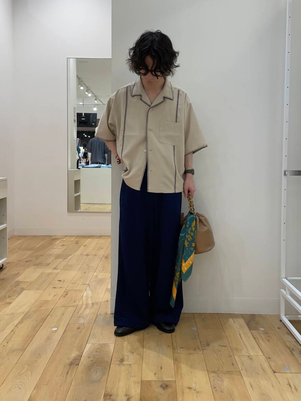 バッグとローファーのレザー素材、スカーフで少し綺麗め要素をプラス。
