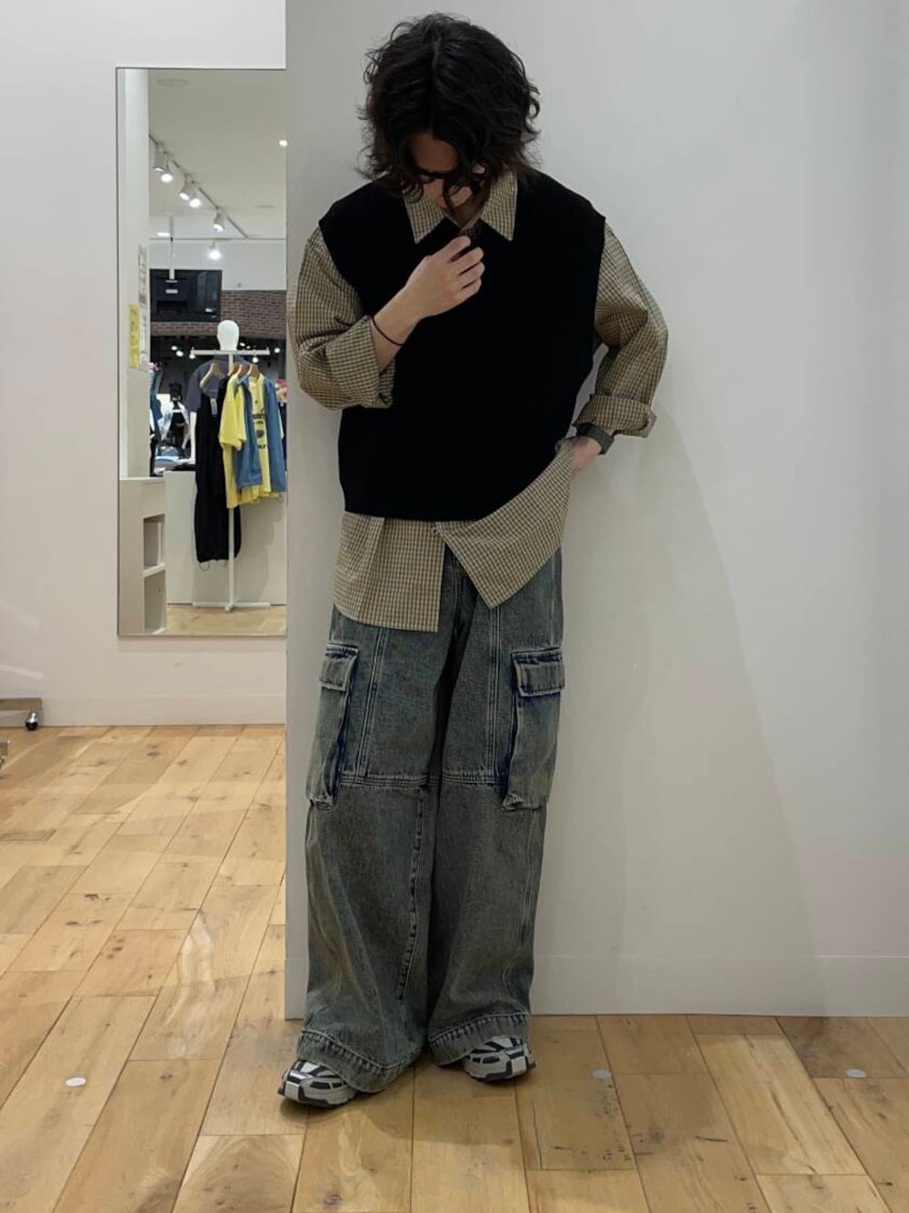サイズ感やデザインは今っぽく、でもなんとなく安心感のあるような合わせ。デニムに関しては色褪せたような加工やほつれ加工が施されている為、存在感あります。おすすめです。