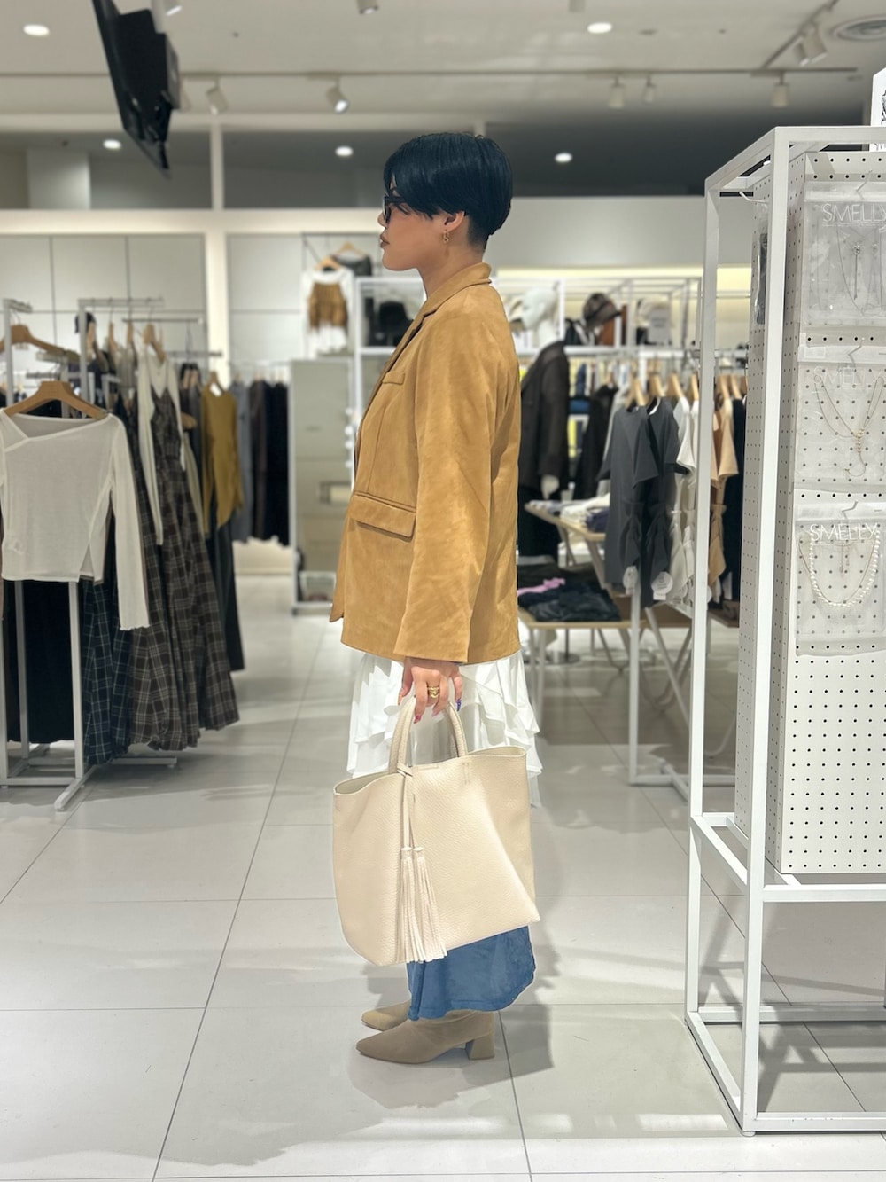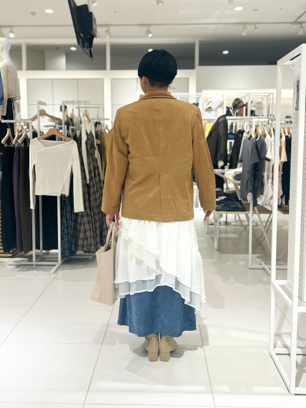 ワンピースとジャケットがコーデュロイ生地で光沢が綺麗です💫白いアシメスカートを履くことで、コーディネートにメリハリをつけてみました!