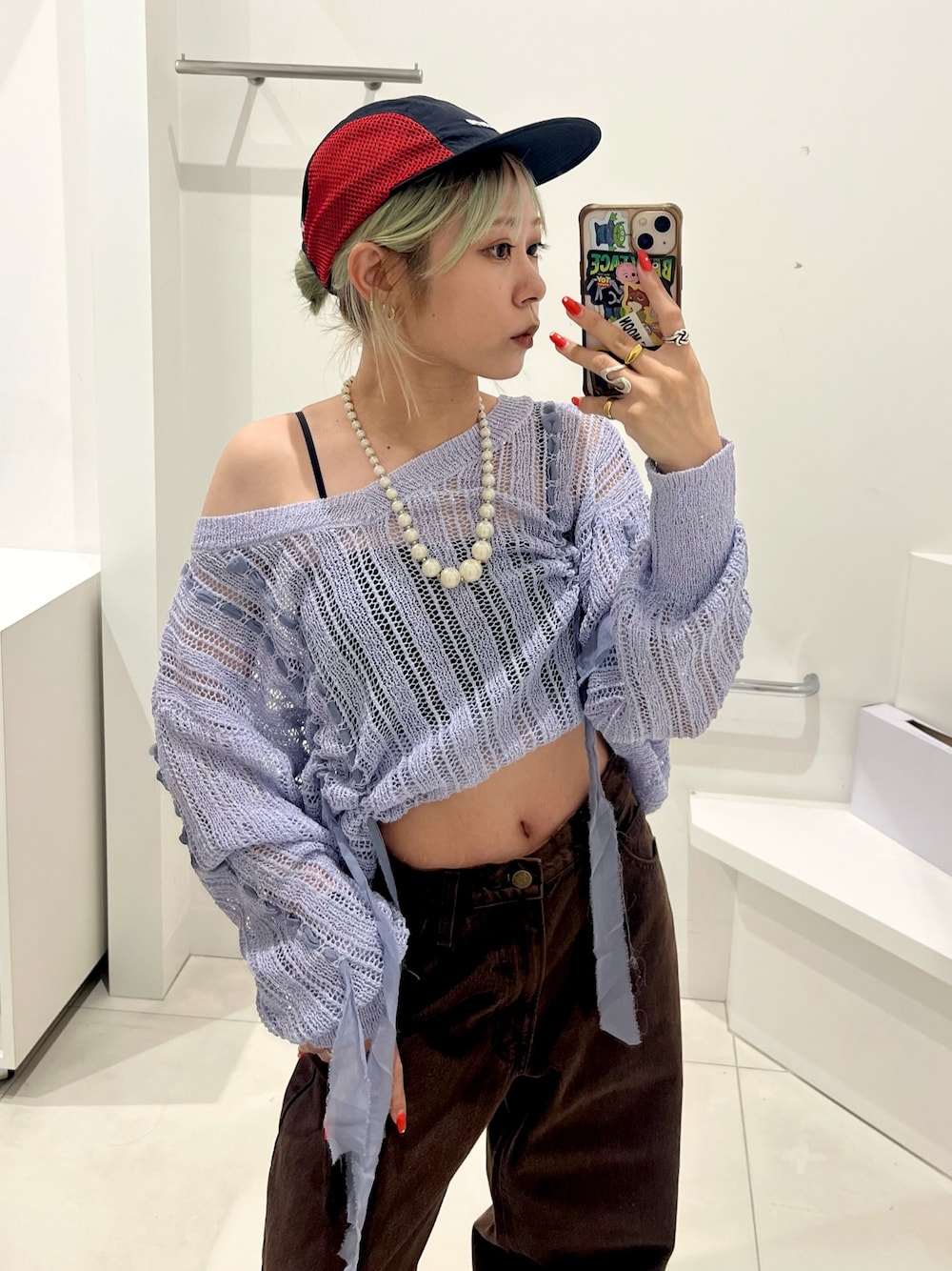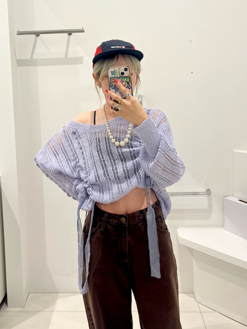 ニットはテープをくしゅっとさせるとシルエット変えて楽しめるのが嬉しいです☺️💖