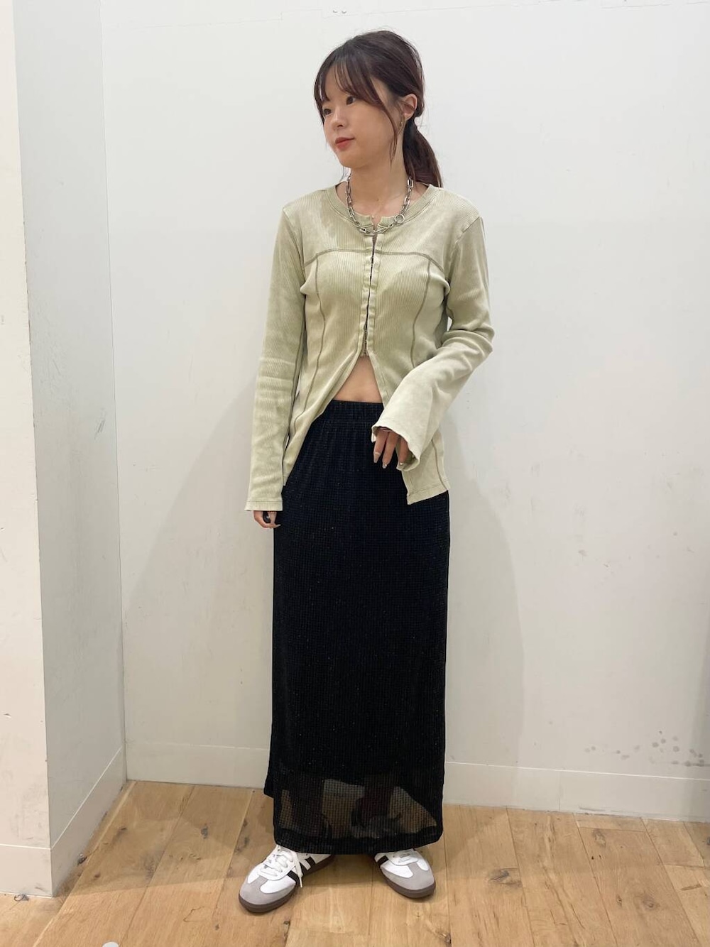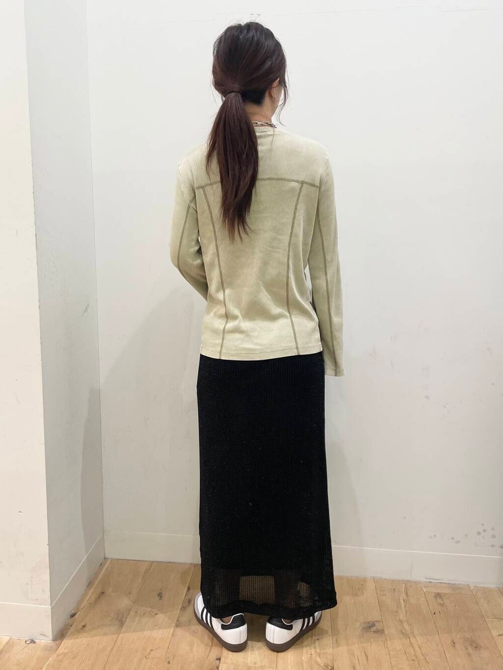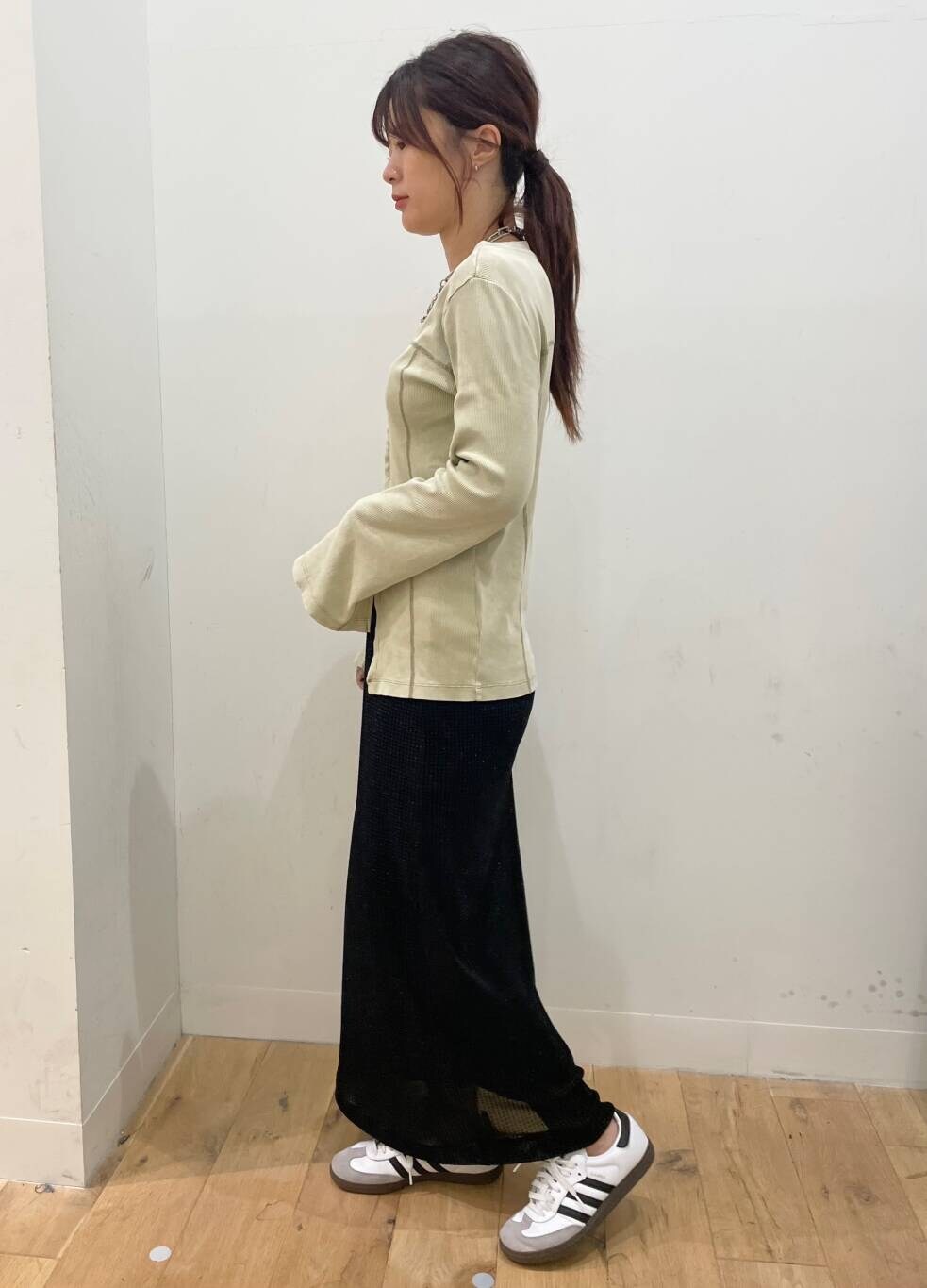 トップスは肩まわりが華奢にみえるので、