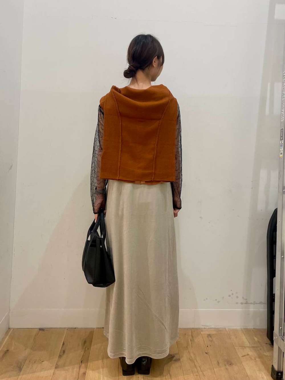 シアーインナーに差し色のカーディガンで今からでも着れる秋服を意識しました!