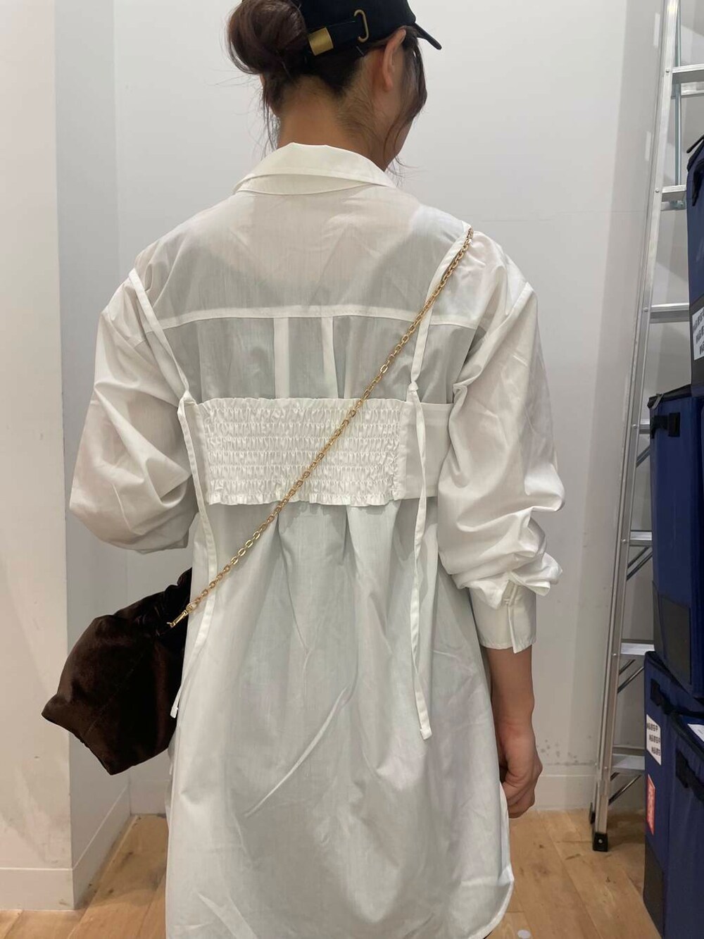チュニック丈でおしりまですっぽり隠れる丈感ですが同素材のビスチェのおかけで重心が上がって見えます◎