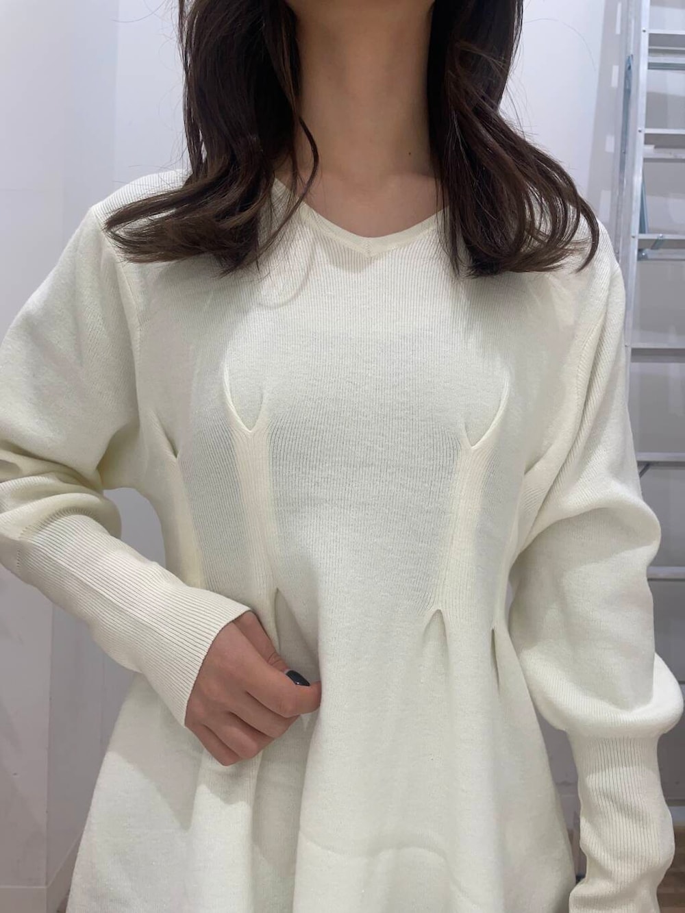 Vネックウエストタックセーター
