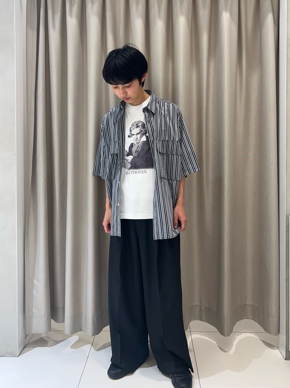 今回はモノトーンでコーデを組んでみました!夏らしくセットアップにしつつ、ベートーヴェンのTシャツを入れて、アクセントをつけてみました!ぜひ試してみてください!