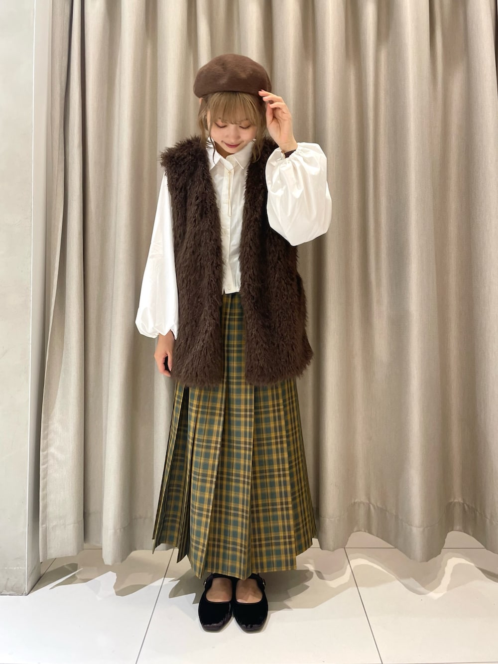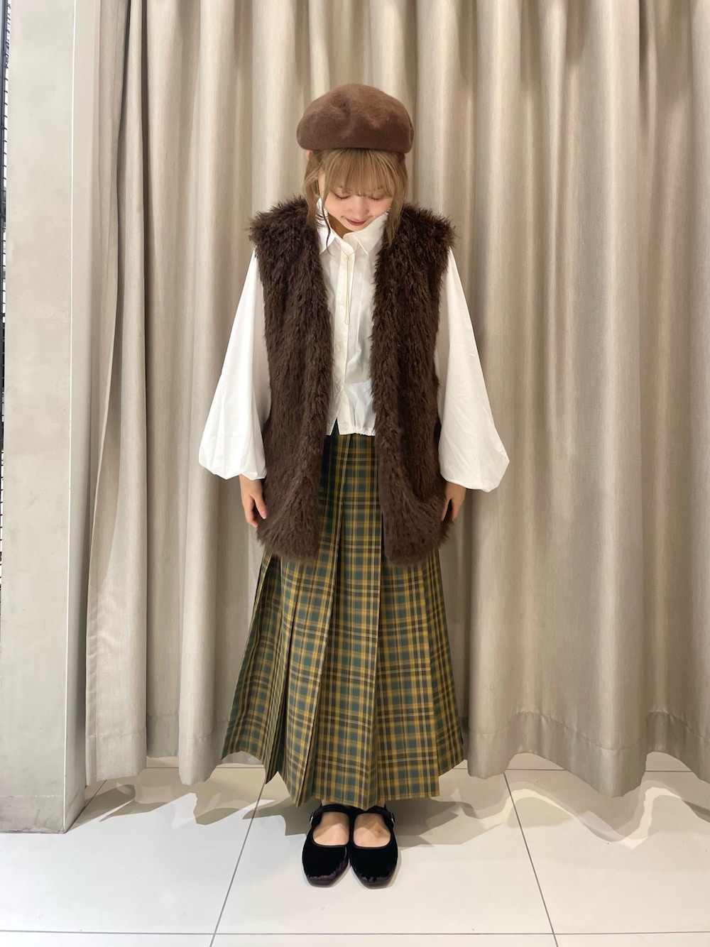 流行りのアイテムと秋らしさをぎゅっと詰め込んだコーデです🪑🧶