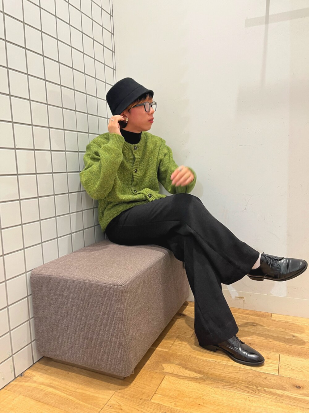 普段はあまり使わない緑を指し色にコーデを組んでみました!