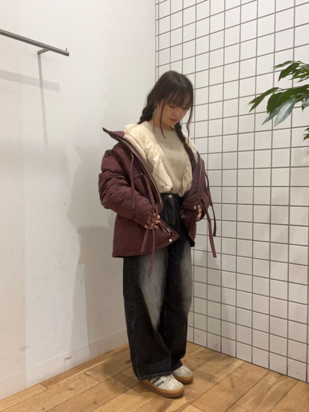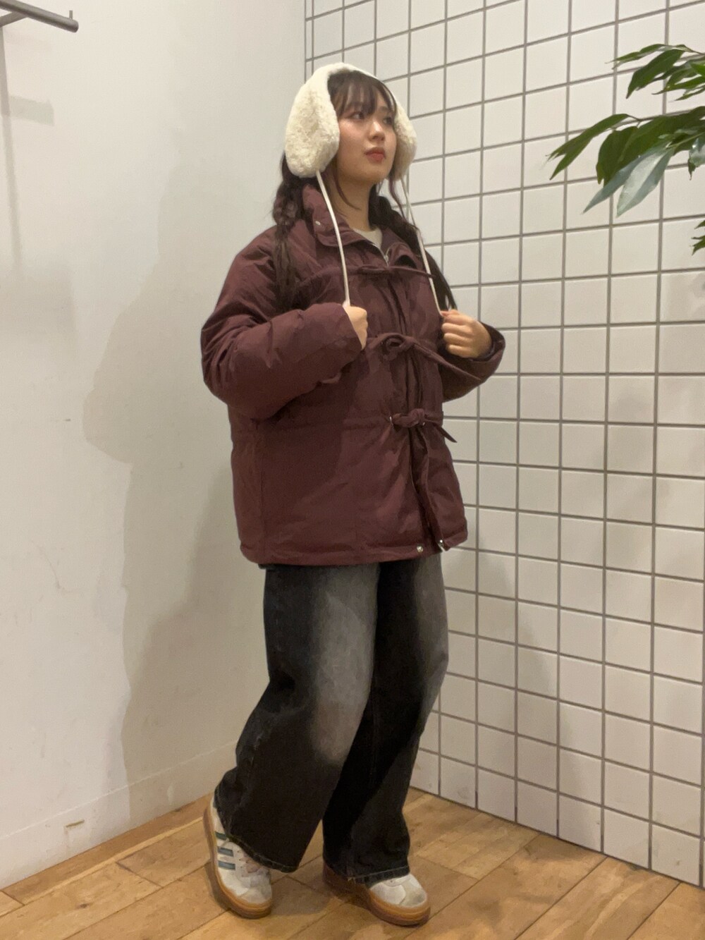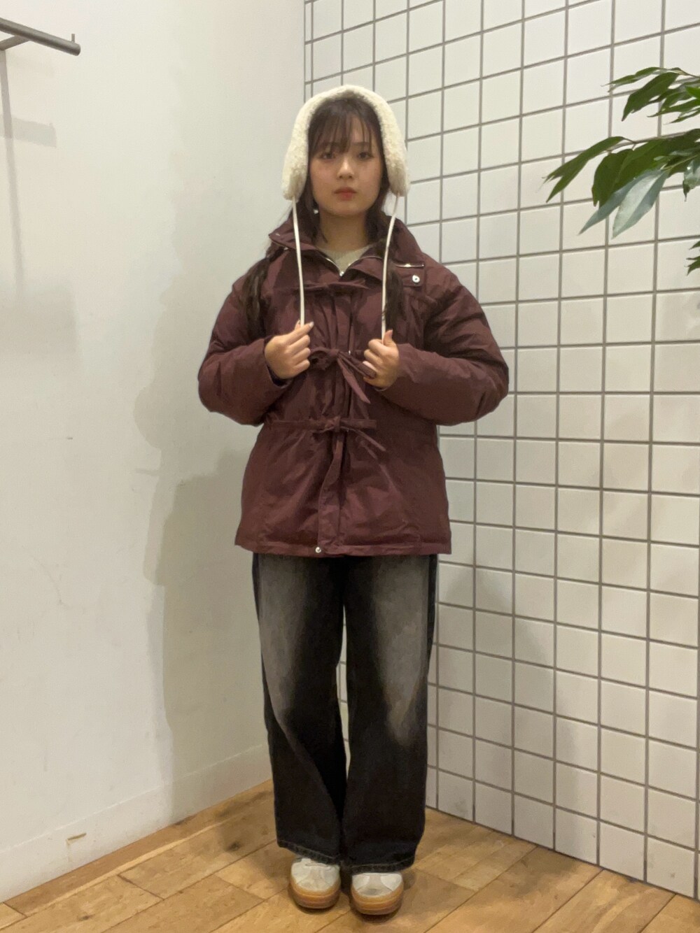 バーガンディカラーのダウンを使いました!動きやすいです!