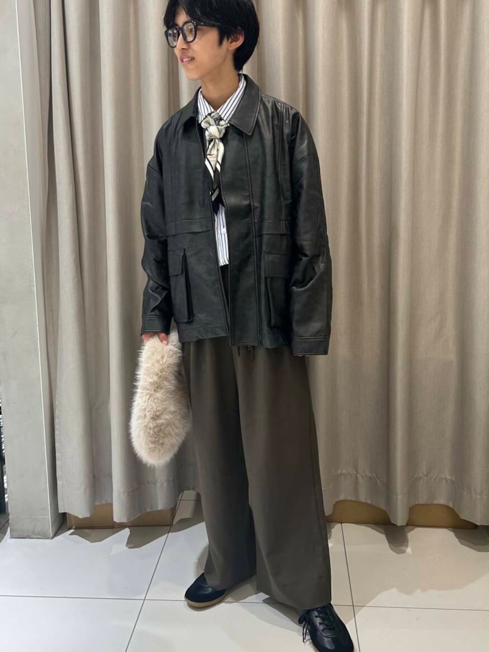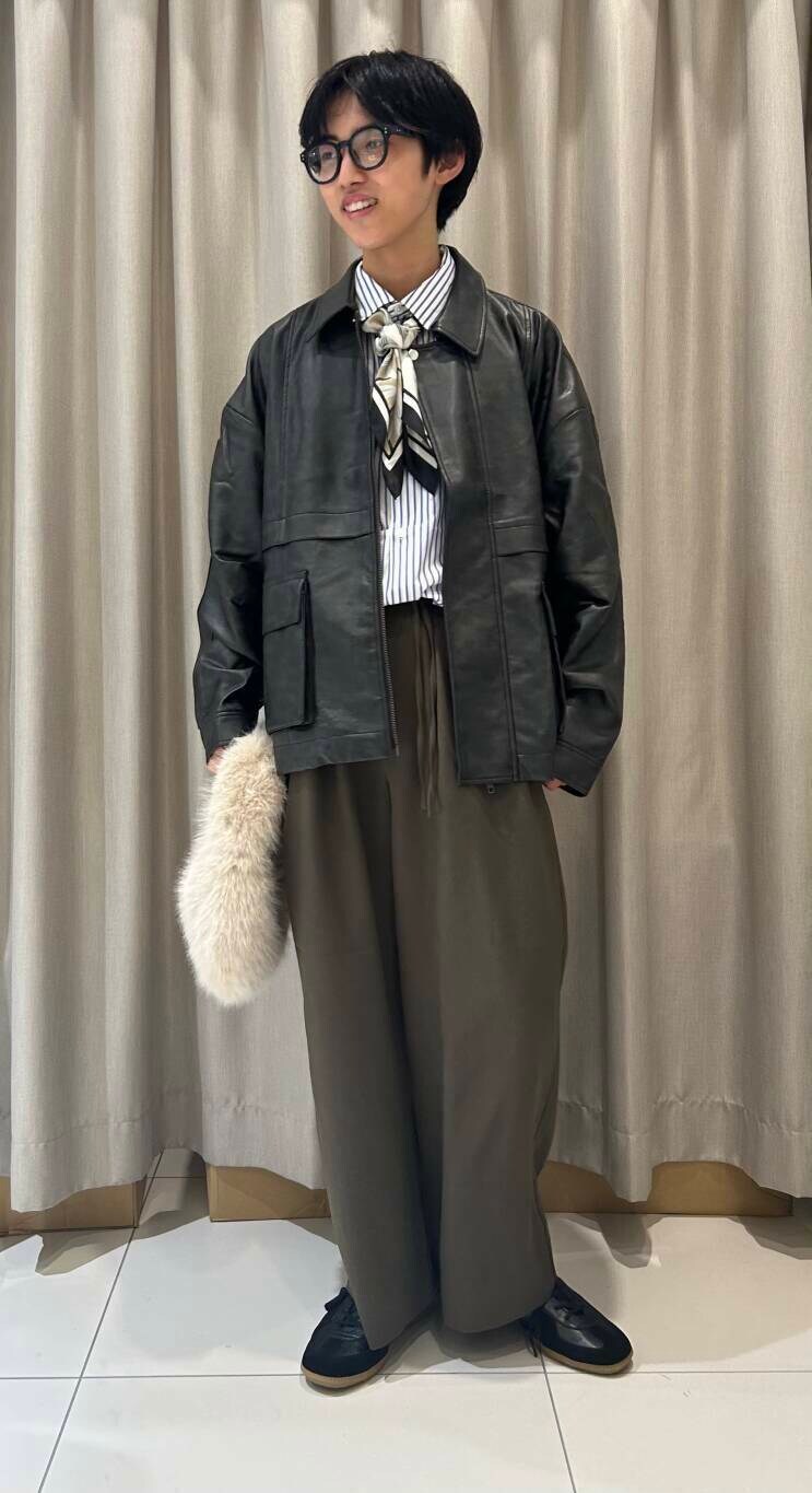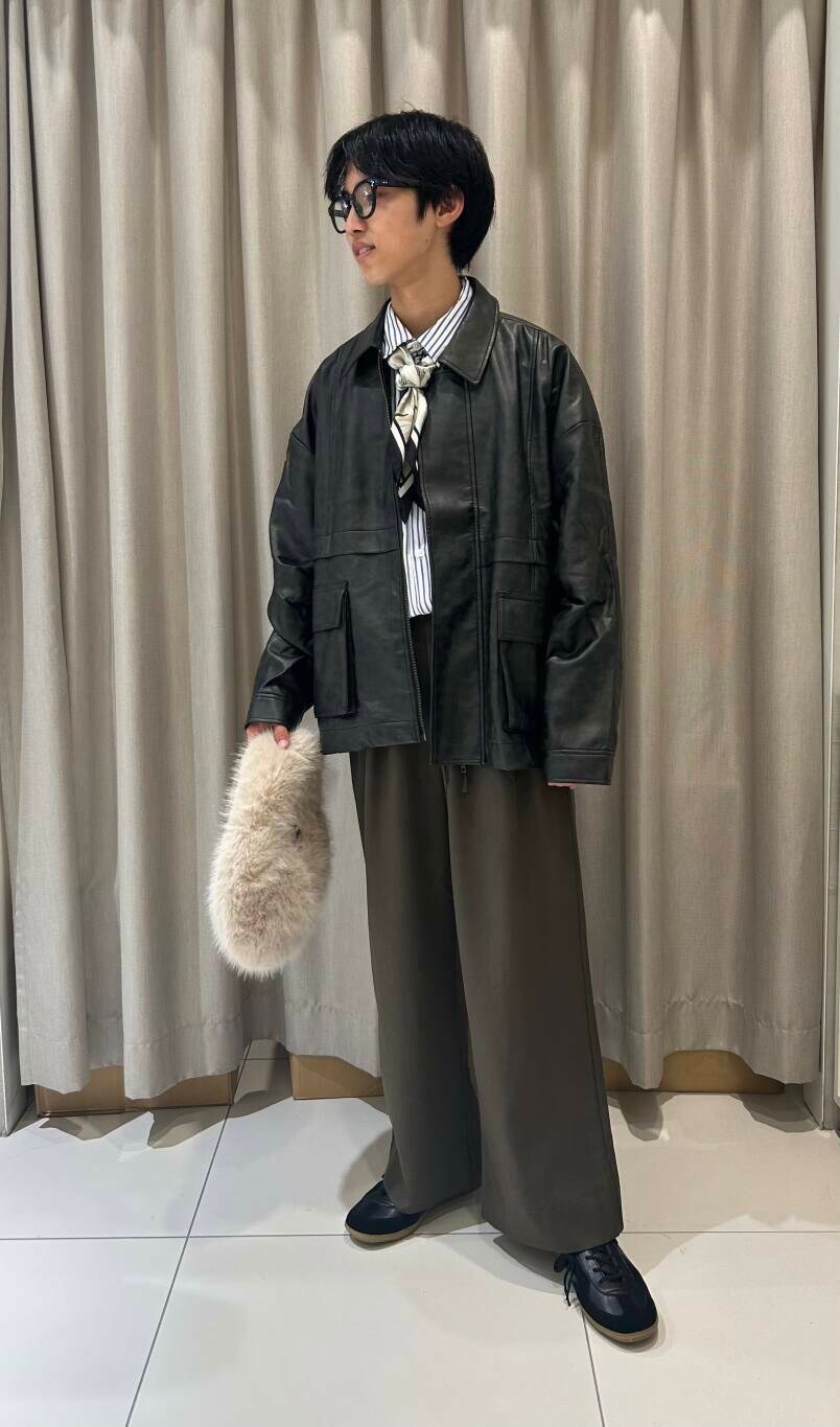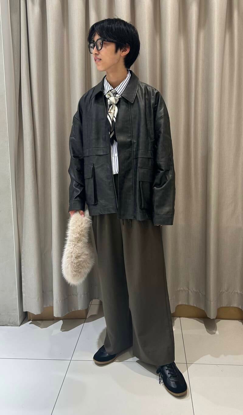 今回はヴィンテージ感のあるレザージャケットを使ってみました!レディースのアイテムですがオーバーサイズなのでメンズの方でも着れますし、大きめなレザージャケットを着たいかたにもおすすめです!