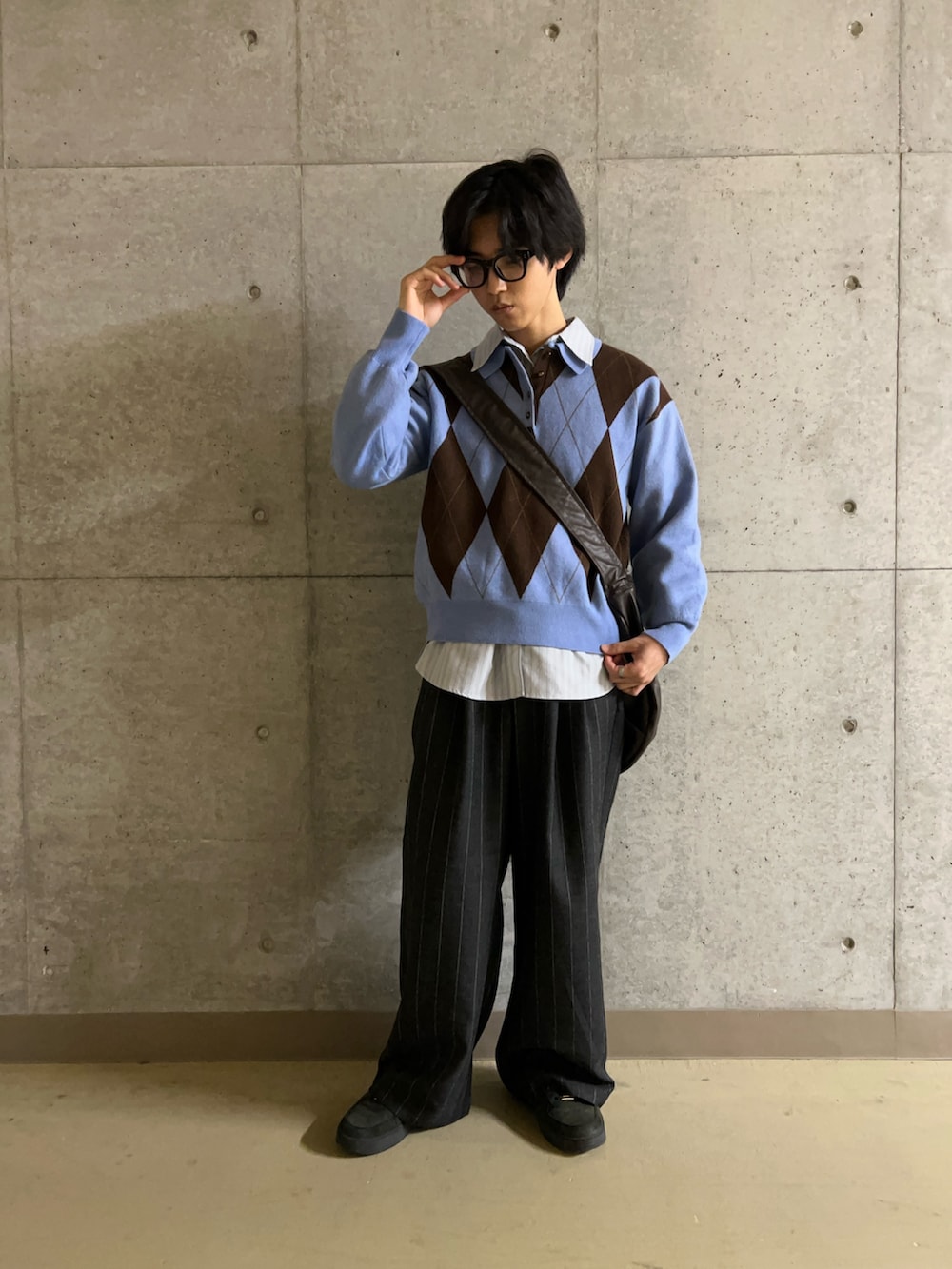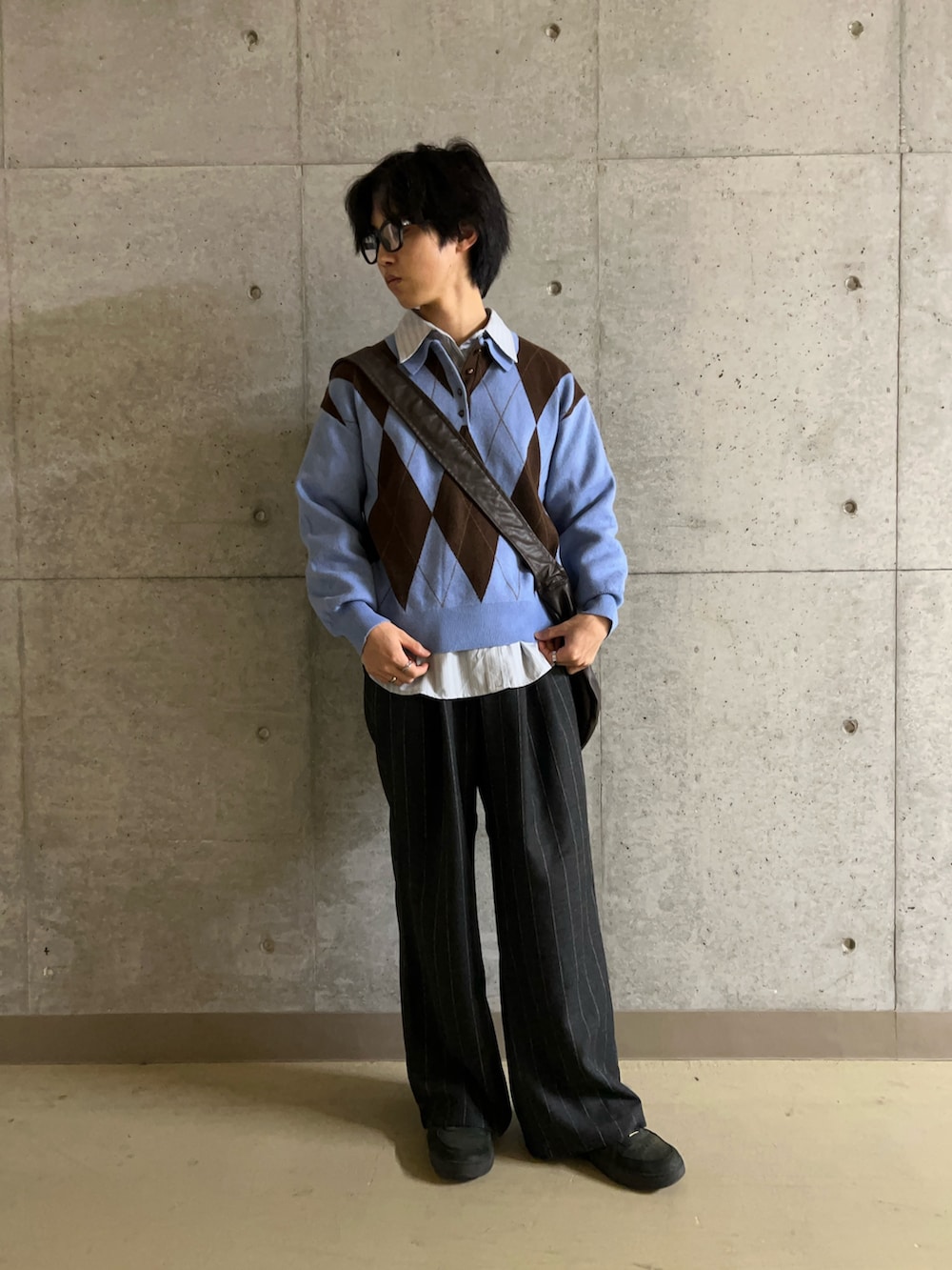 今回はトップスをブルー系で統一して、ブラックのフレアパンツを合わせることで、洗練されていてキレイめなコーデにしてみました!サングラスやレザーのバッグをプラスすることで全体的にインテリっぽい雰囲気が出ていると思います!ぜひ試してみてください!