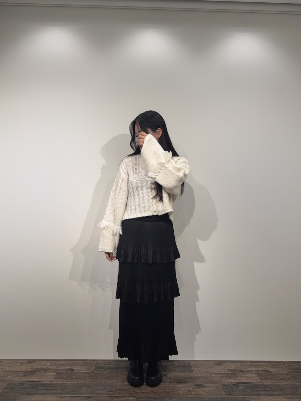 このニットは赤色もあるのでイルミとか映ますね🎄