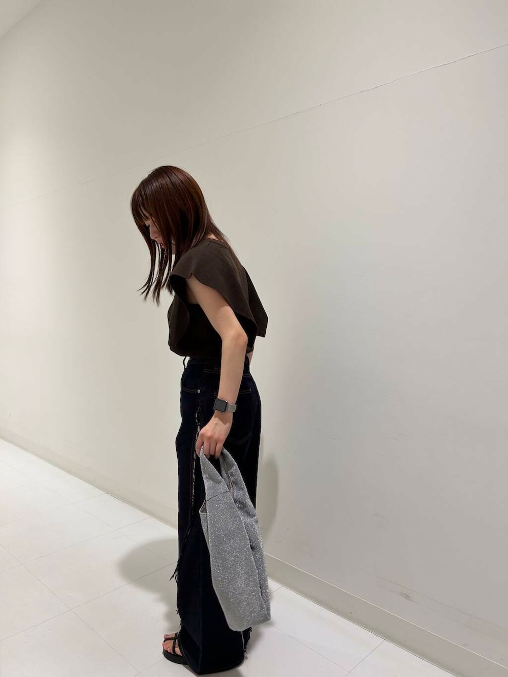 トップスのサマーニットは、脇の開きが狭いため、インナーを気にせず、1枚でサラッと着ていただけます🤎そして形がすごく可愛くて、二の腕が程よく隠れて細見えします!超オススメです!