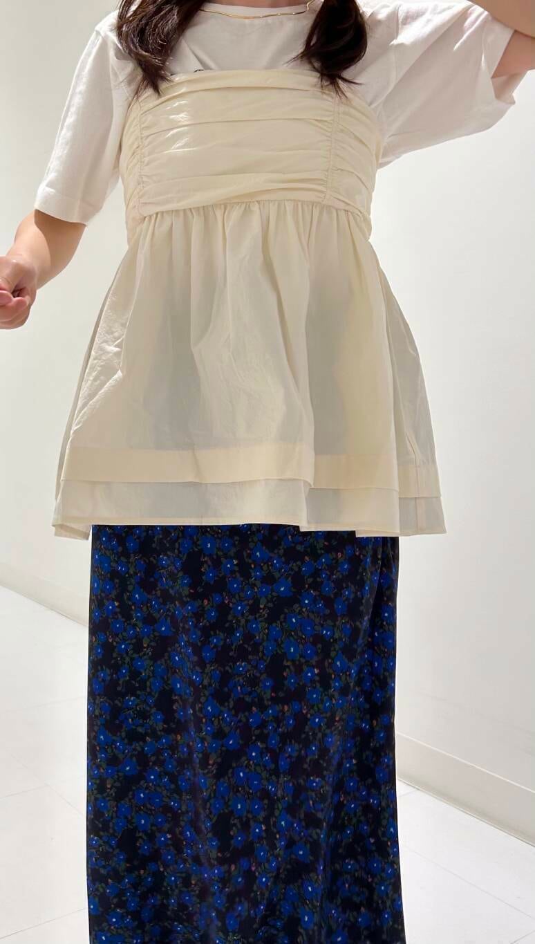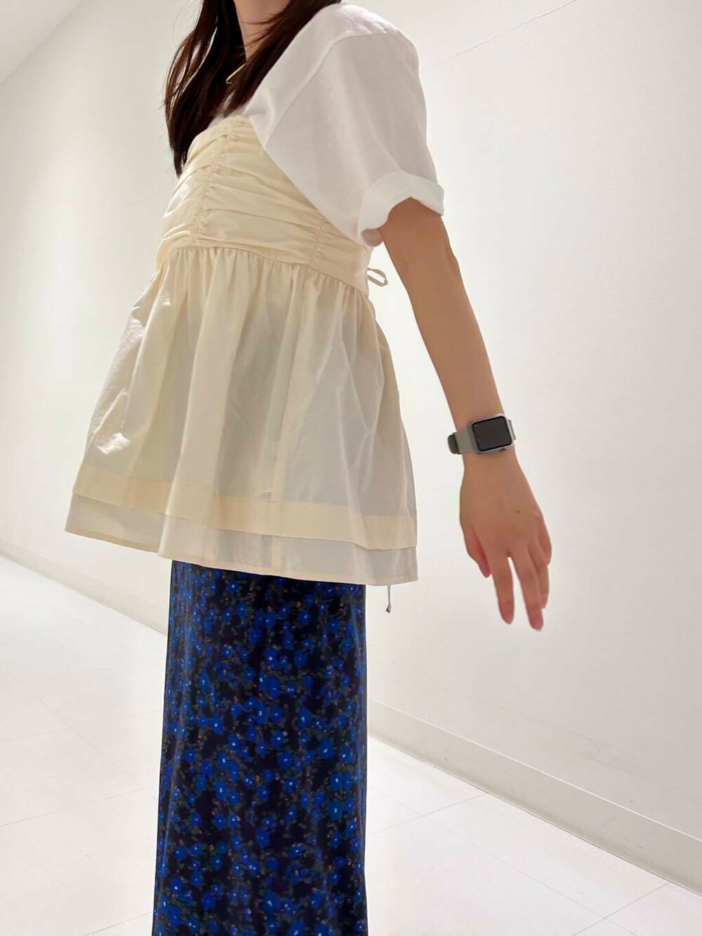 ビスチェのフリルが広がっているので、タイトなスカートやパンツを合わせていただくと、スタイルアップします🌼