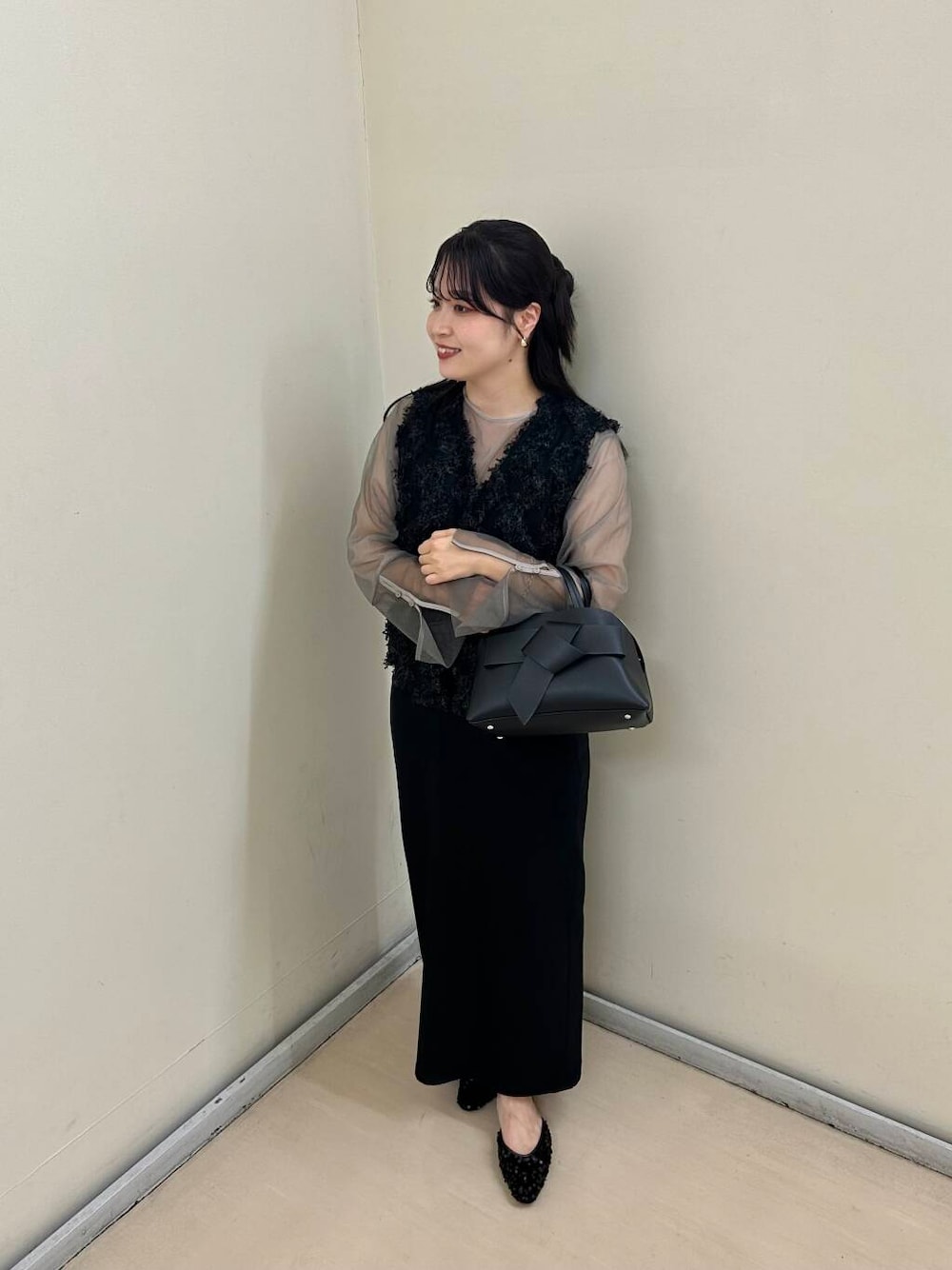 シアーの素材を取り入れて今からでも着れるコーデに仕上げました!