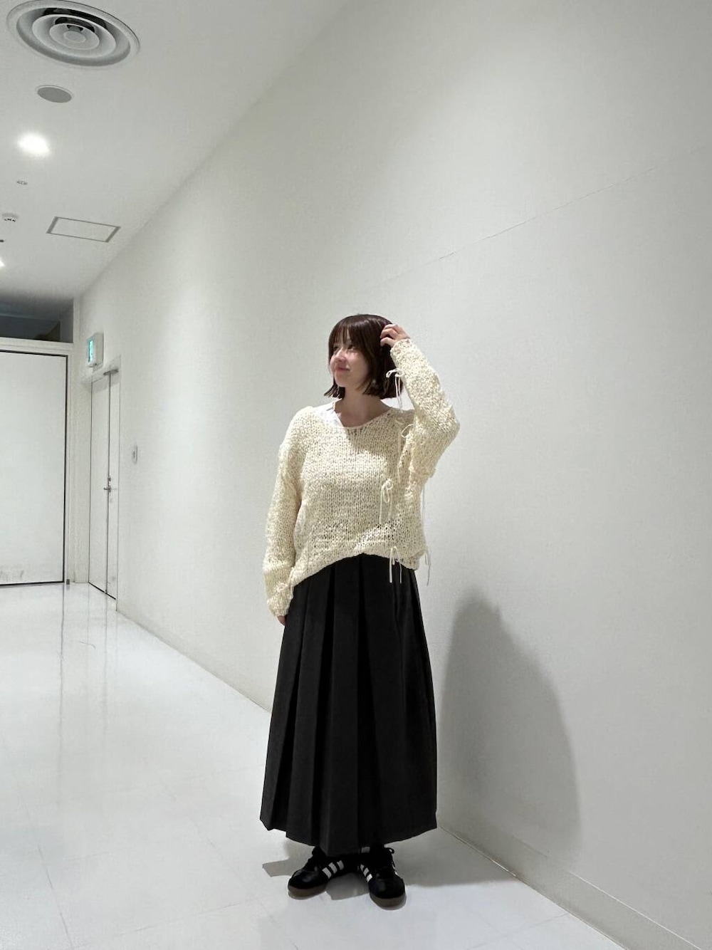 流行りのリボンが散りばめられたニットは、薄手なので今の時期にピッタリです🎀もう少し気温が下がったら、カラーのタートルネックなど合わせていただいてもかわいいです!!