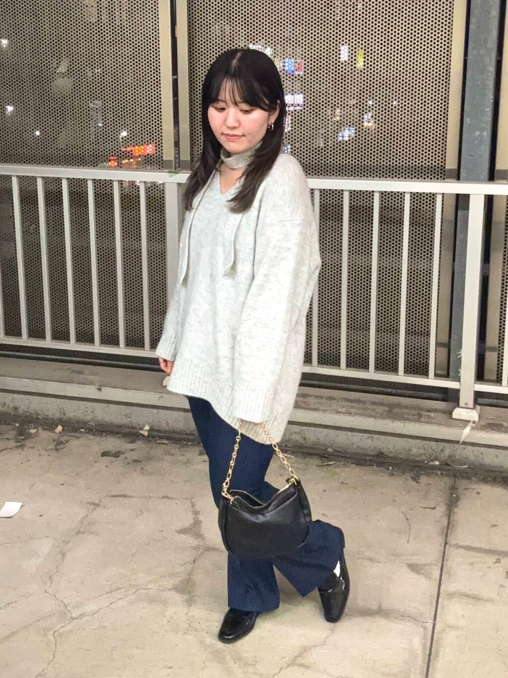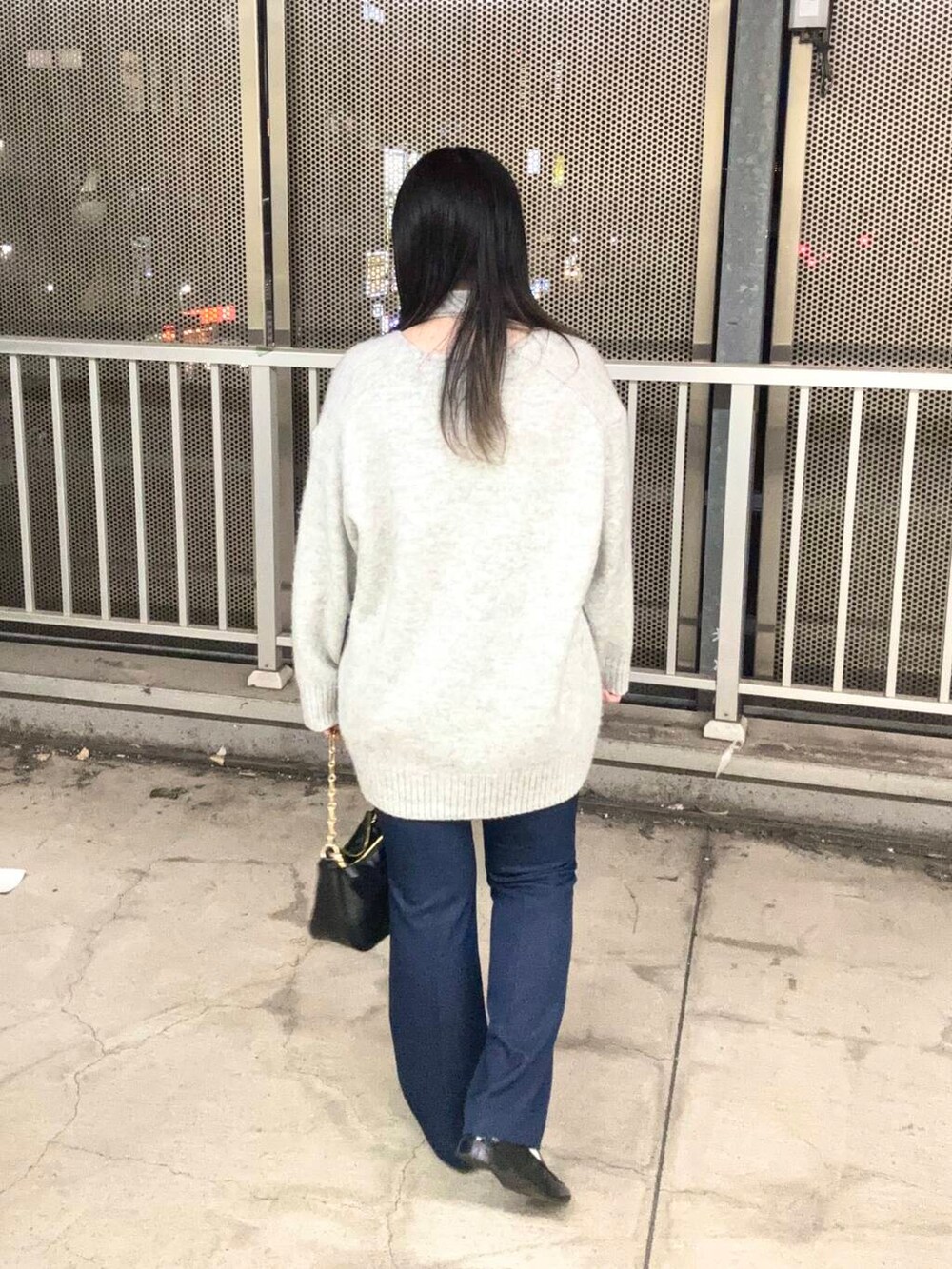 オーバーサイズのセーターはお尻までしっかり隠してくれて、Vネックで首回りを綺麗に見せてくれる万能セーターです!!
