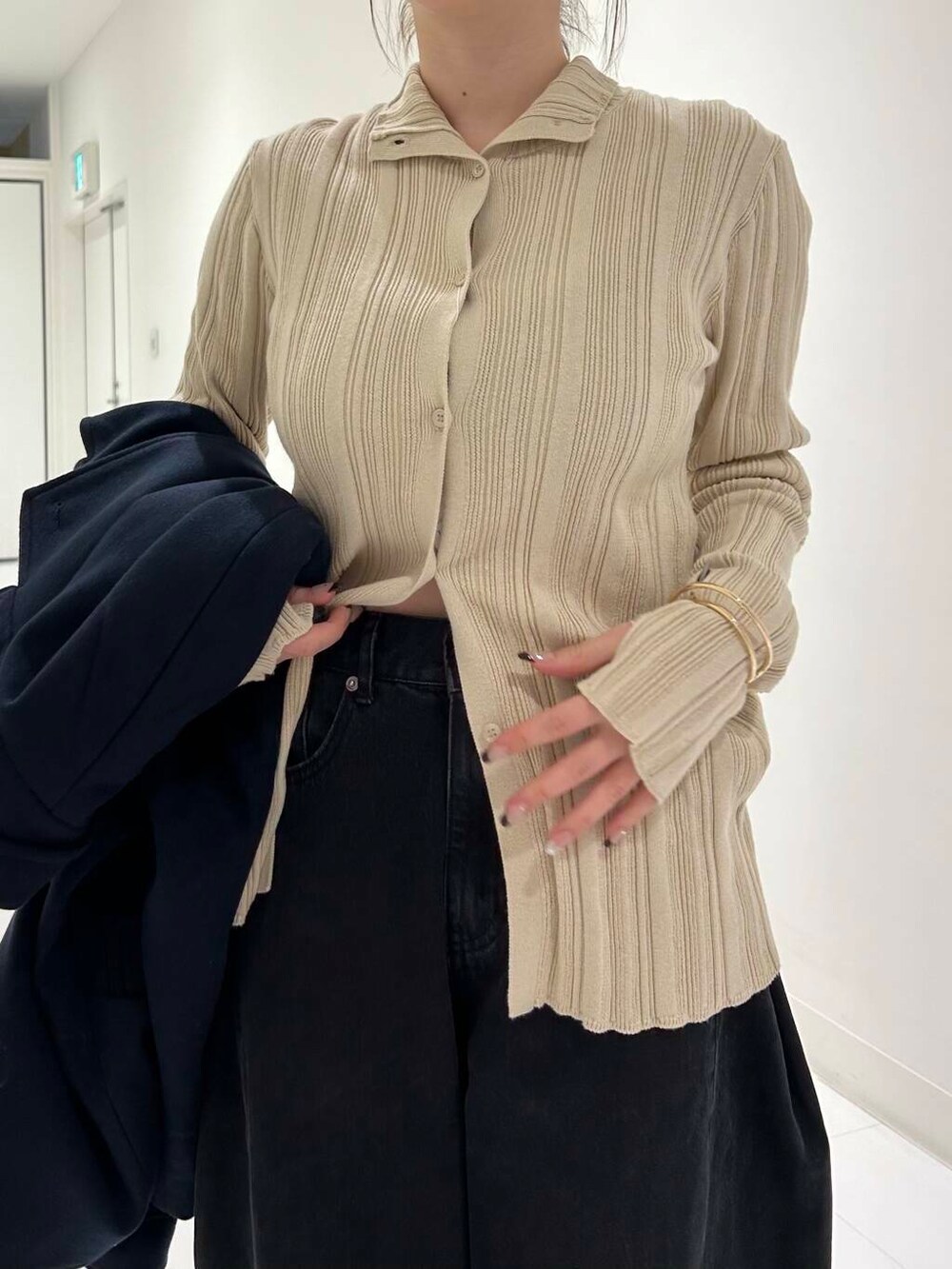 私も購入したリブニットは、袖のボタンがとってもかわいい🎶フロントのボタンをかける数によって形も変わるのもおすすめポイントです!!