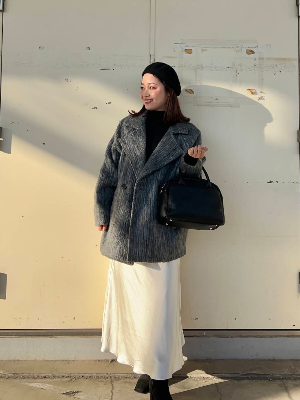 アウターのシャギーミドルコートは