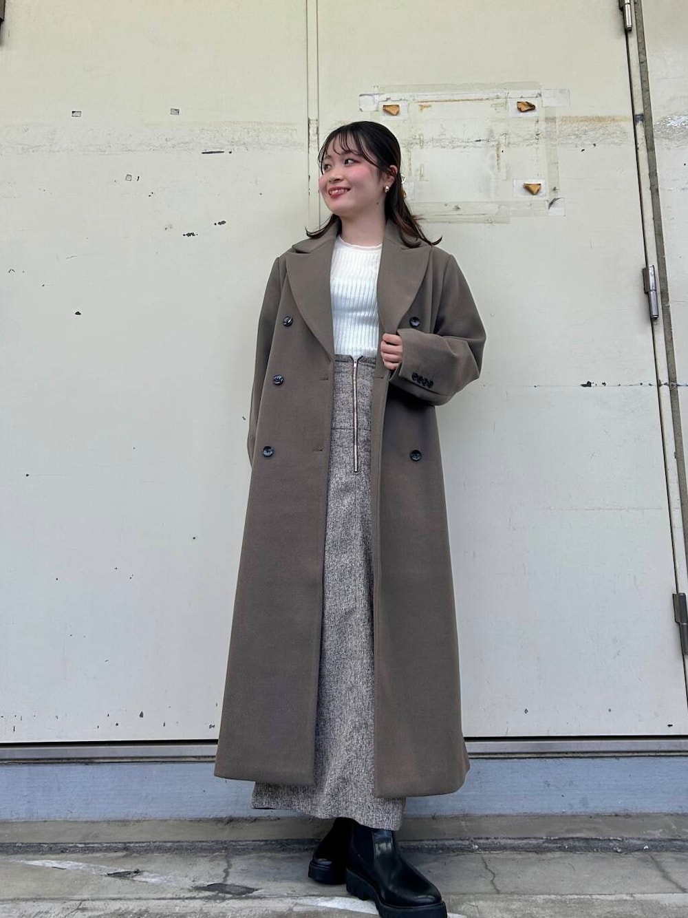 コートは上品な素材感でコーデに取り入れて