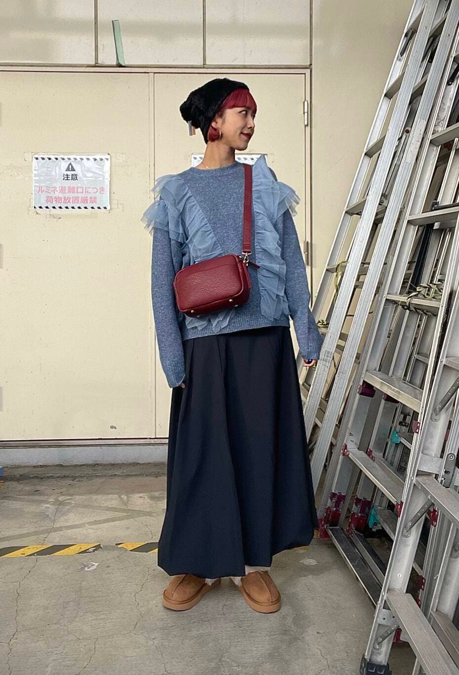 チュールニット、小物を付け足すだけでカジュアルに着こなせます◎