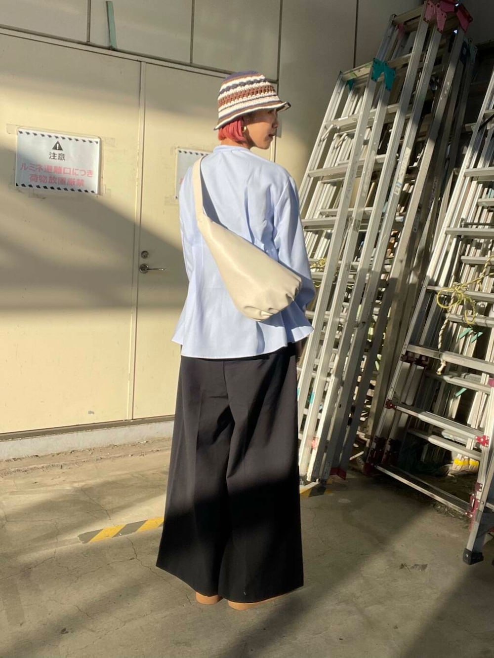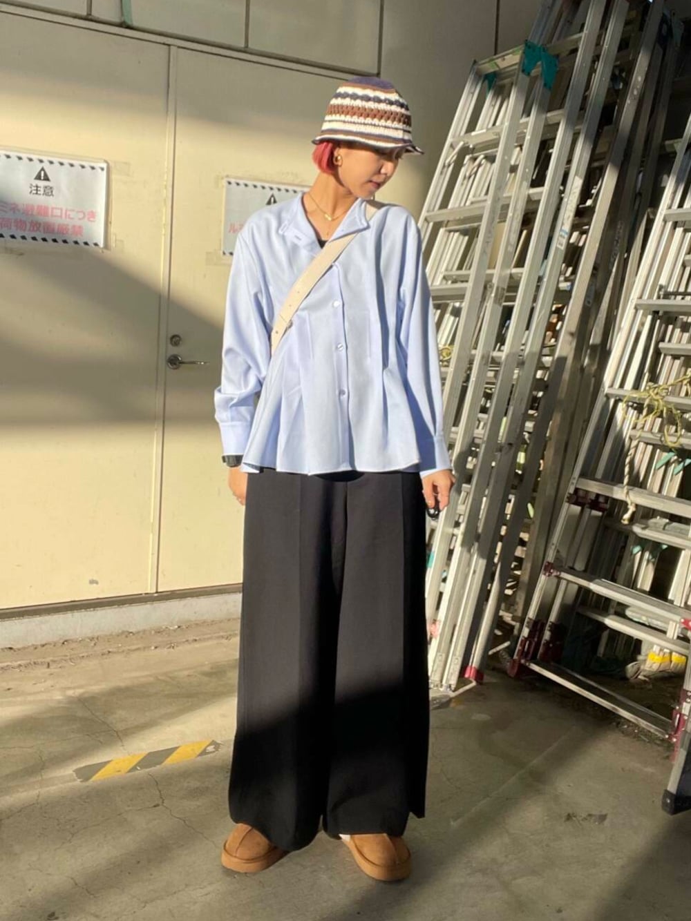 シャツをカジュアルに着たかったので、襟をおってアレンジしました🔆