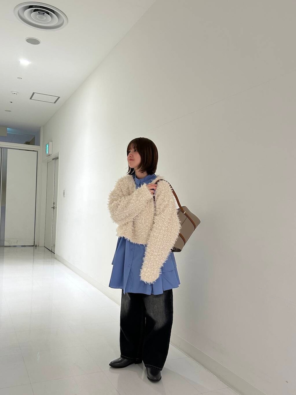 ミニシャツワンピは春秋はもちろんのことらパンツを合わせたりニットを着たりしていただくと、冬でもお使い頂ける万能アイテムです!フリルが大ぶりで、シンプルになりがちか冬のコーデも映えること間違いなしです🩵🫧