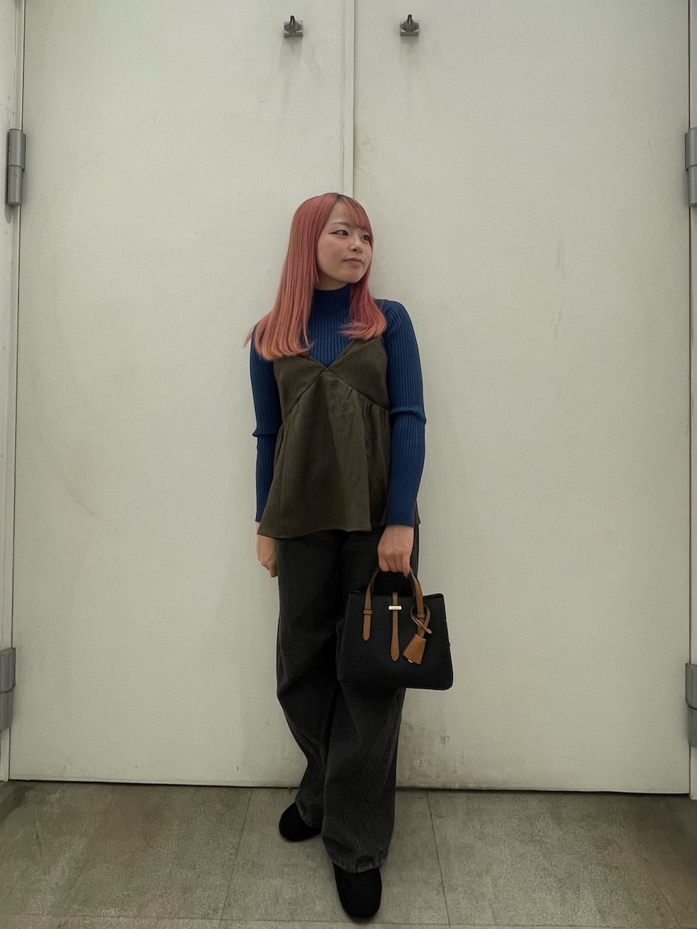 ブルーのセーターと合わせてみたのですが、ブラウンとブルーの組み合わせが可愛すぎました!🤎💙