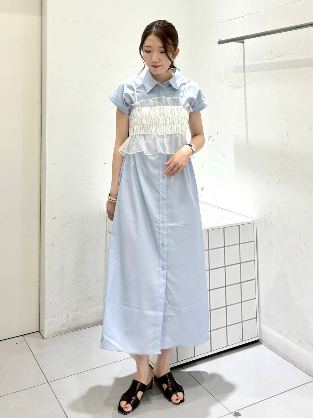 かわいいビスチェがセットのシャツワンピースを着ました🤍🩵