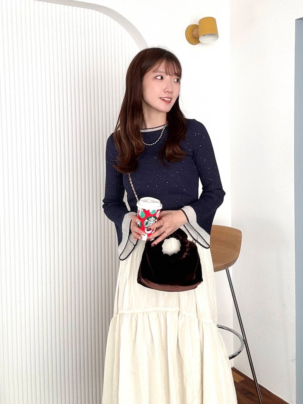 人気のスパンコールバイカラーコンパクトセーターを使ってきれいめカジュアルコーデを組みました✨