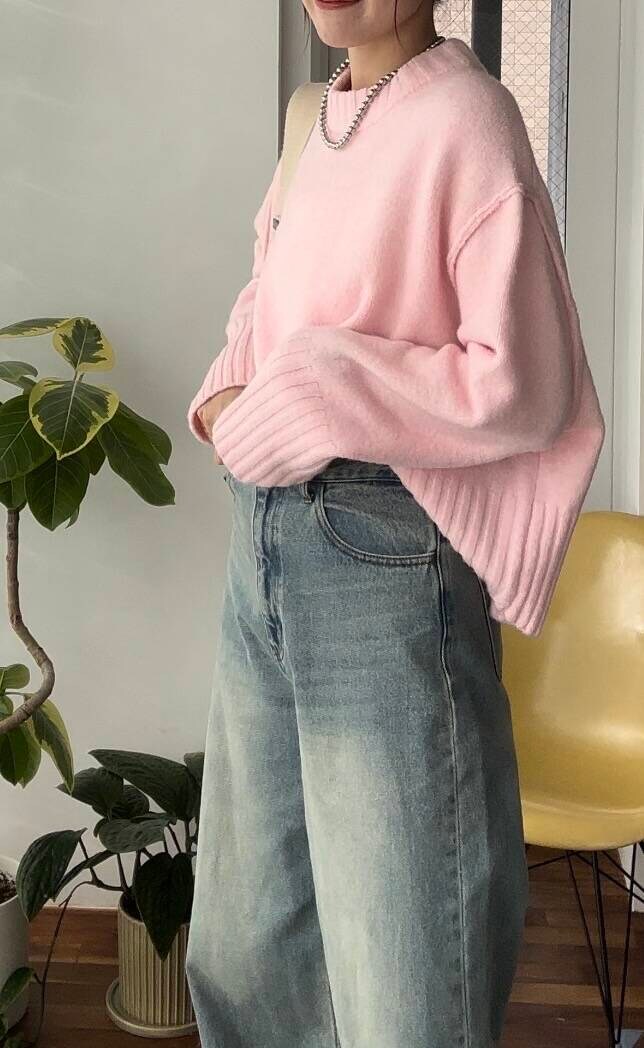 リアルバイアイテムのワイドリブクルーネックセーター🩷