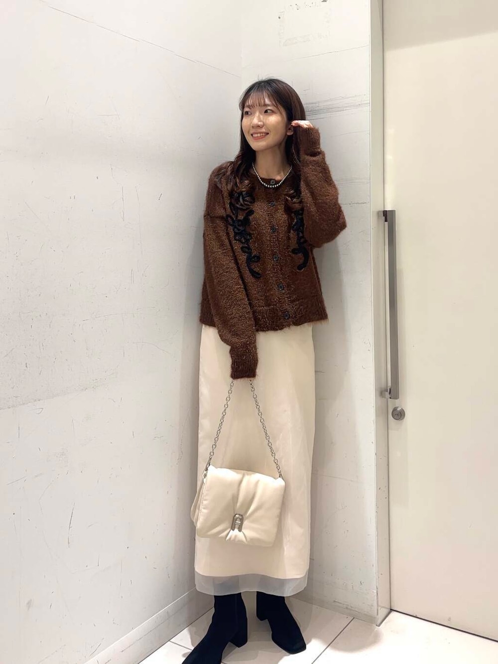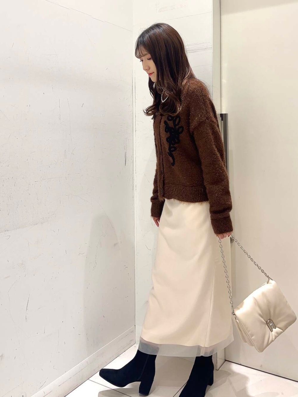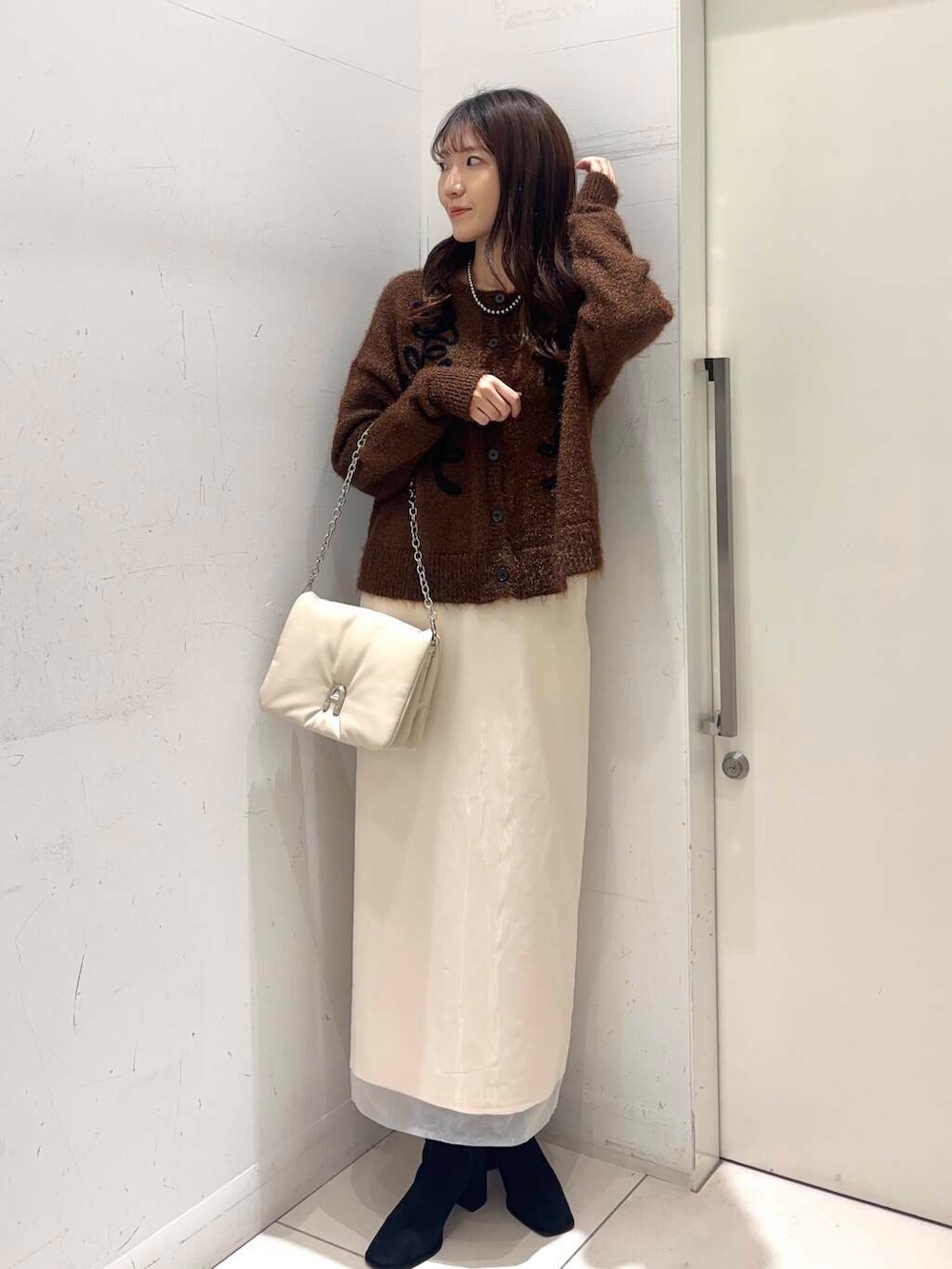 オーガンジーのスカートと合わせて単色コーデにしました🤍🤎