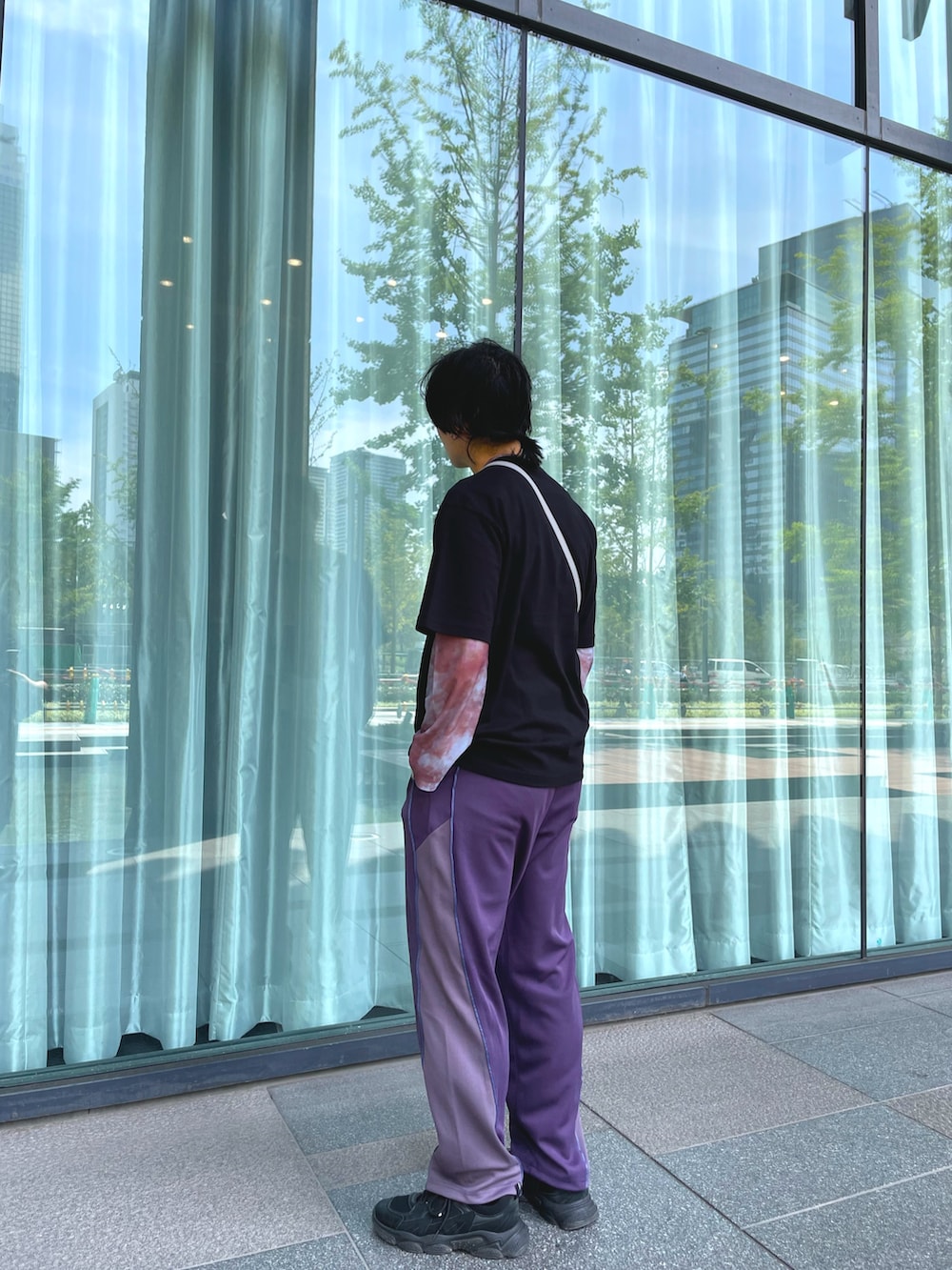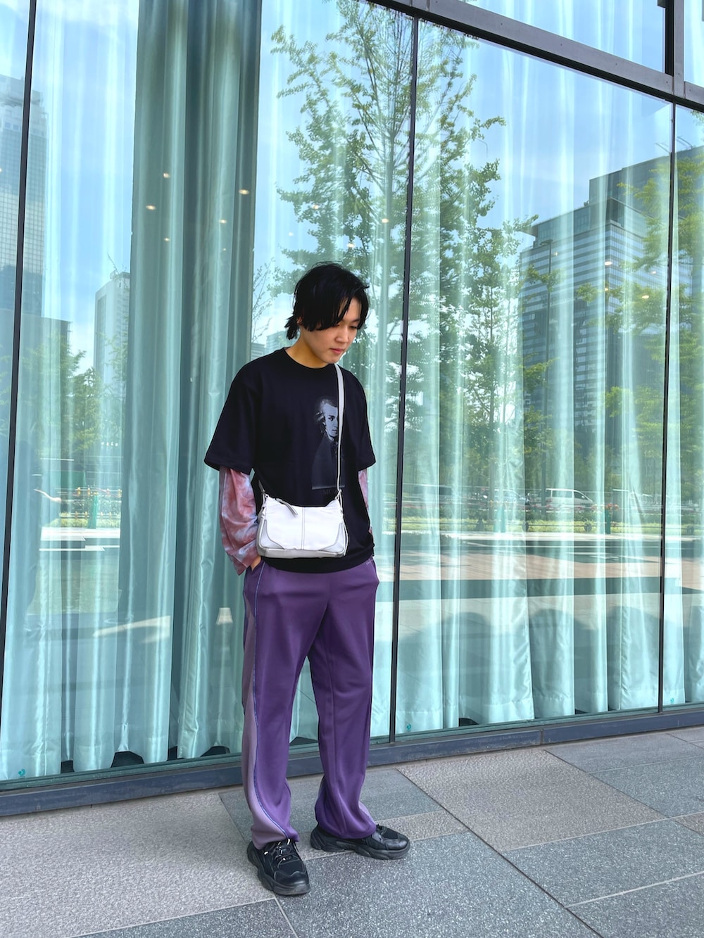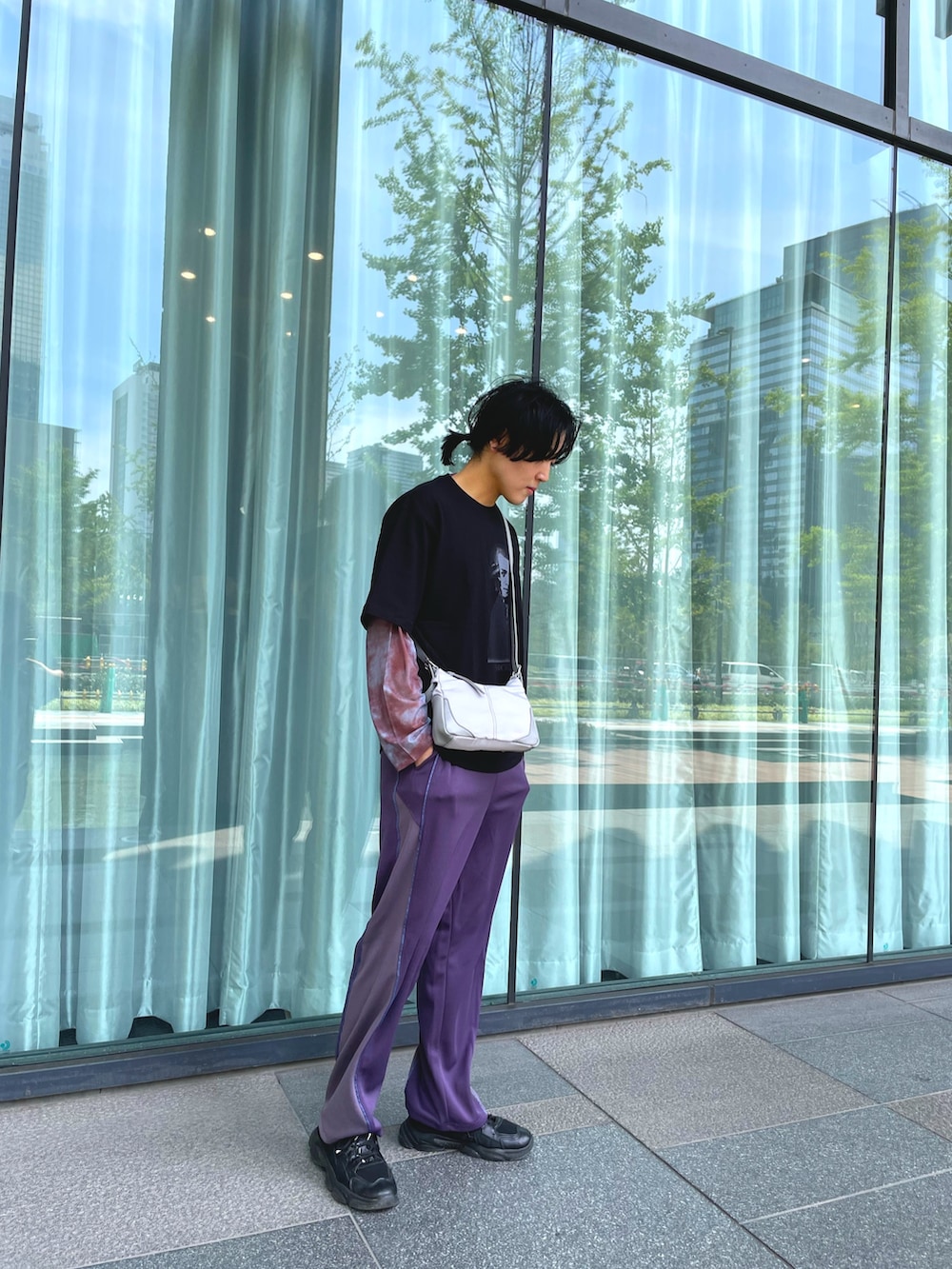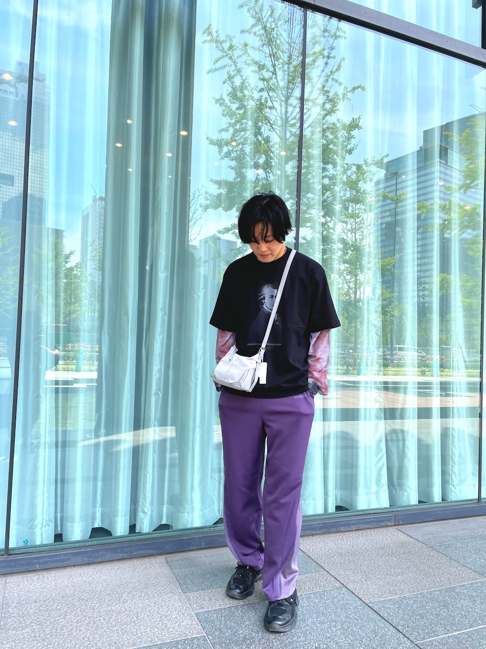 シアーロンTとTシャツでレイヤードしてます。マーブル模様でとても個性的なコーデになります。