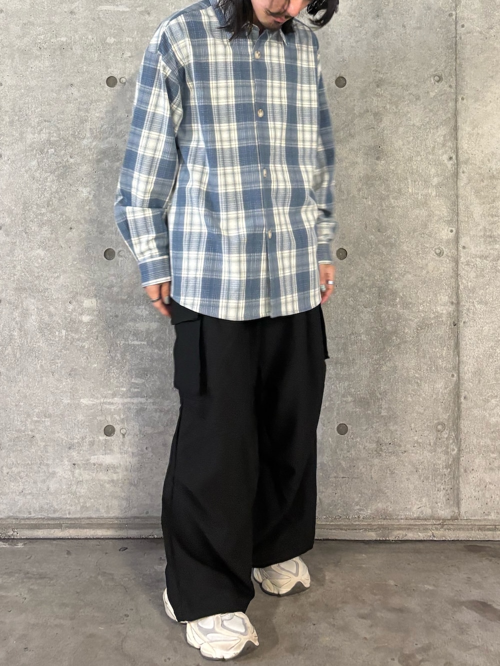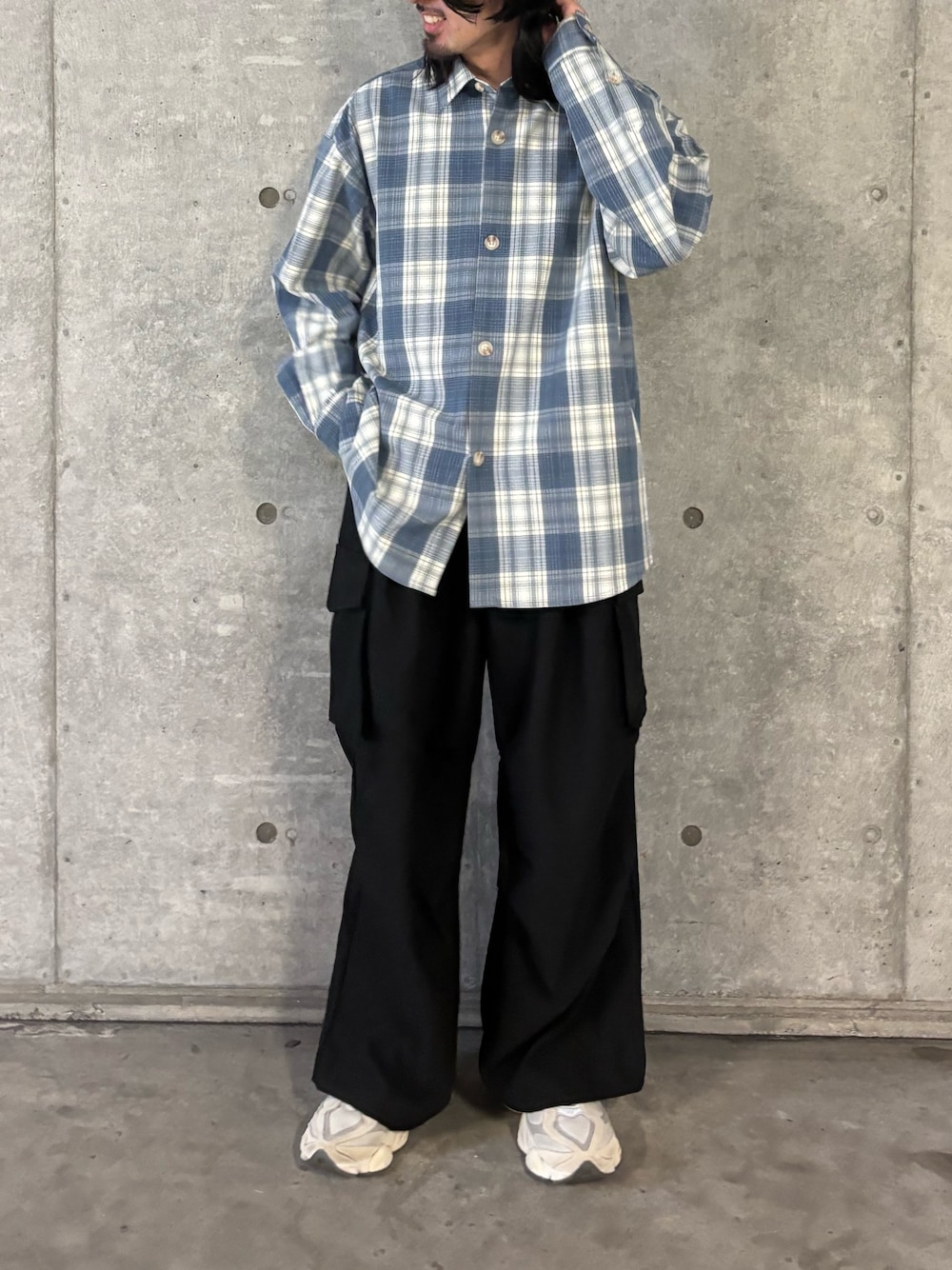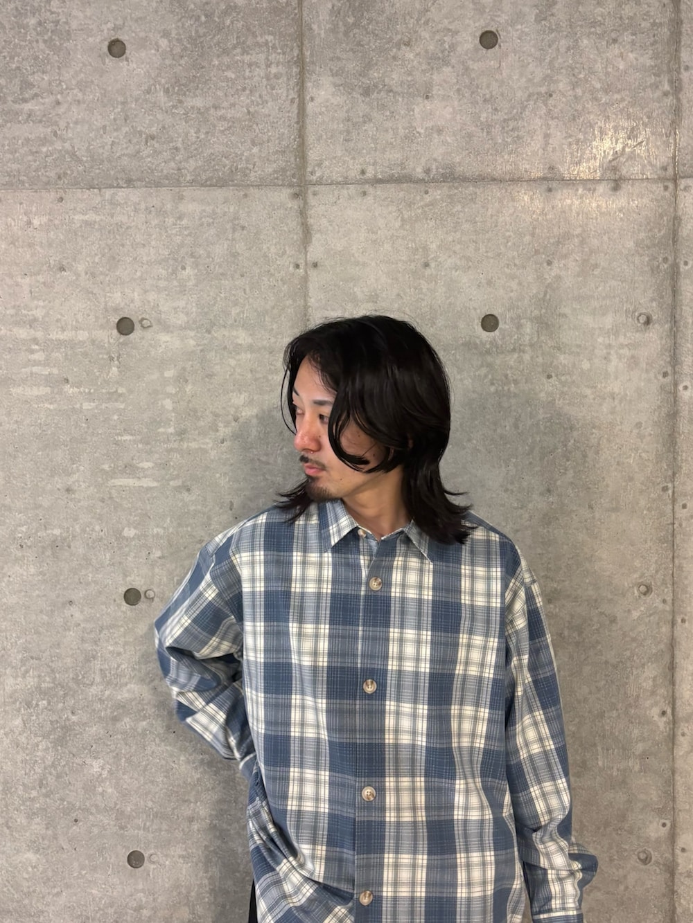 ブルーが目につくチェックシャツ〜