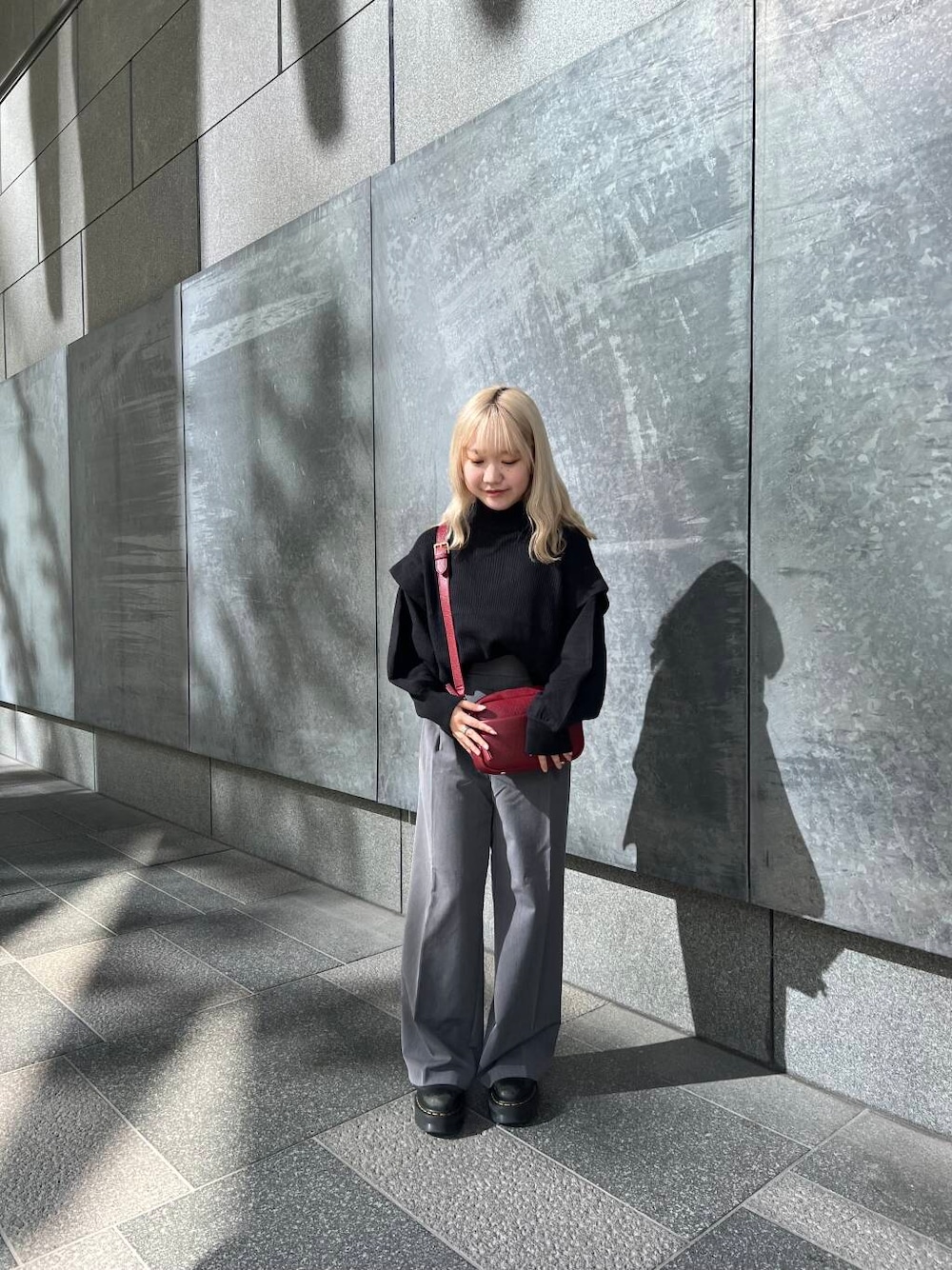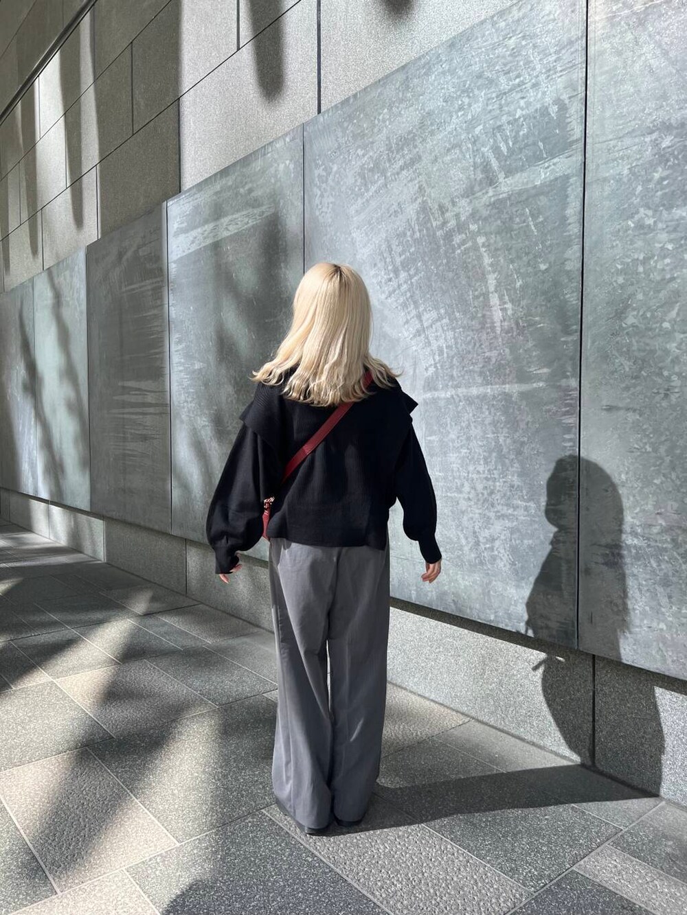 パンツはワイドシルエットですが後ろがゴムになっているのでカチッとしすぎずカジュアルにはいていただけます🤞🏻