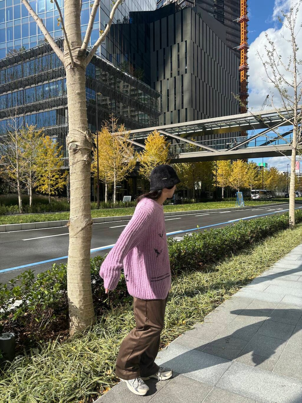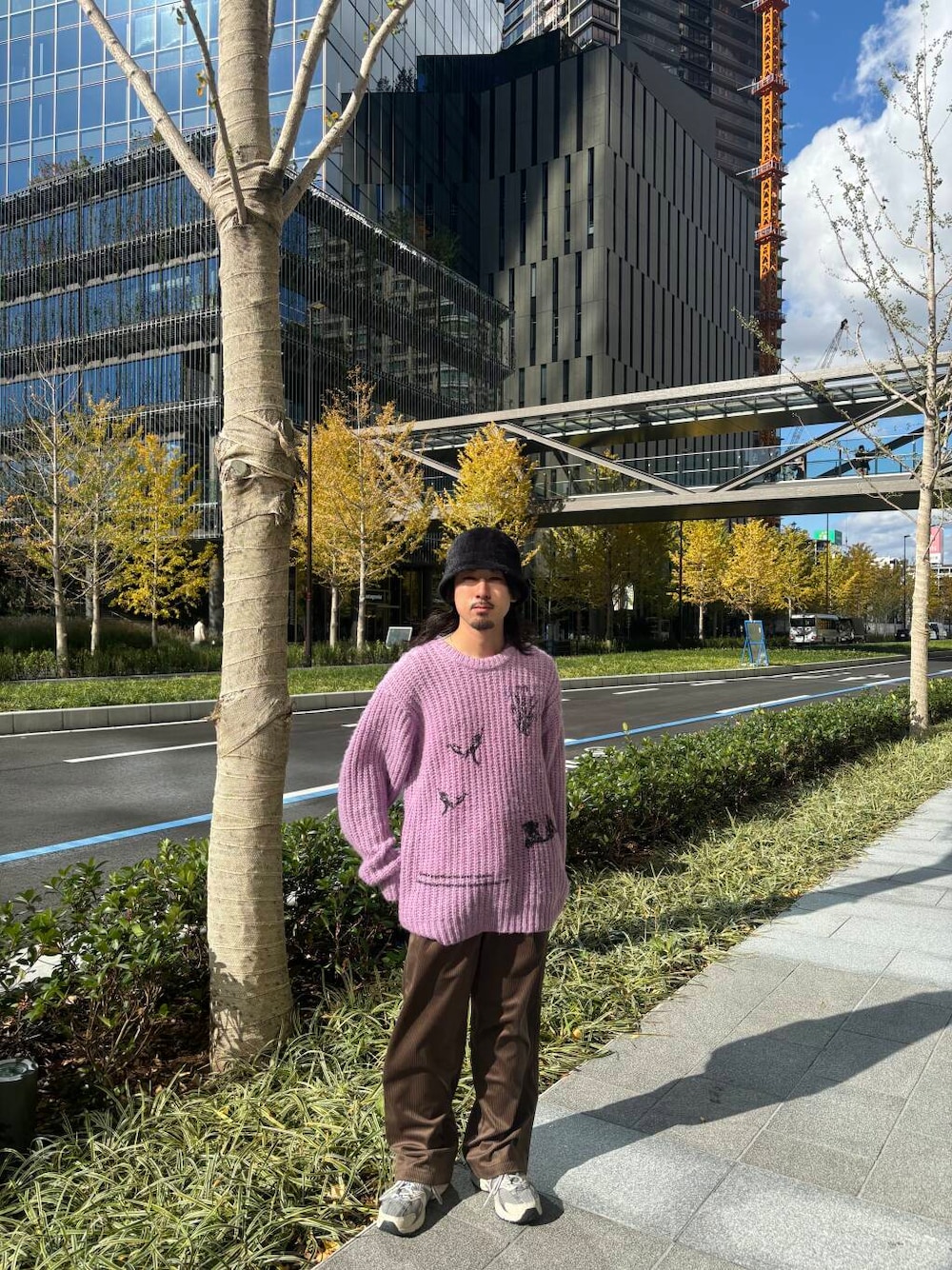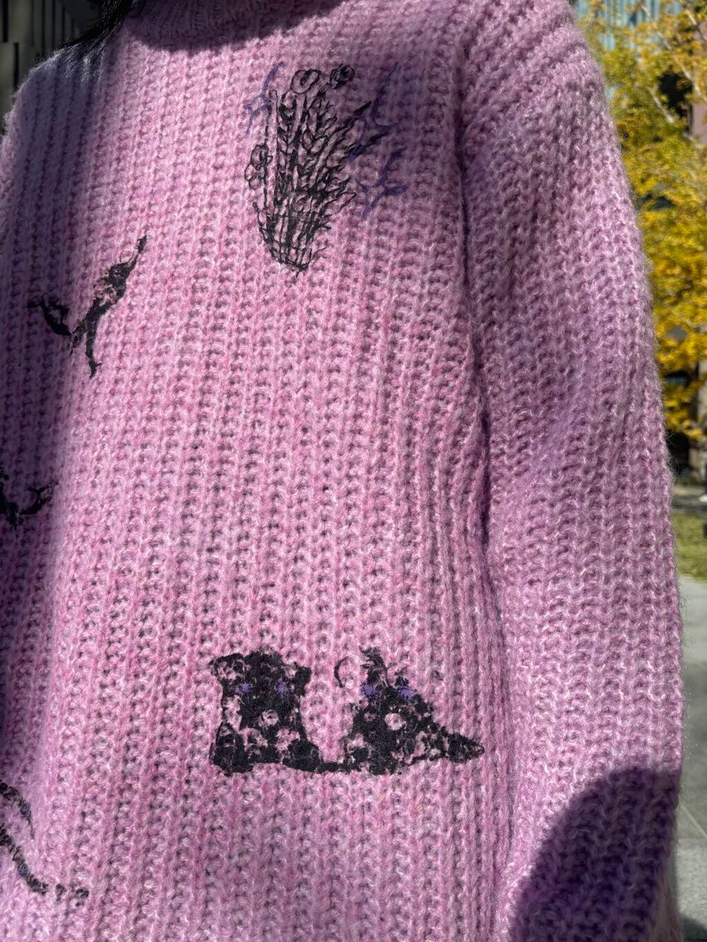 SENSE OF PLACEグラフィックプリントルーズクルーネックニット