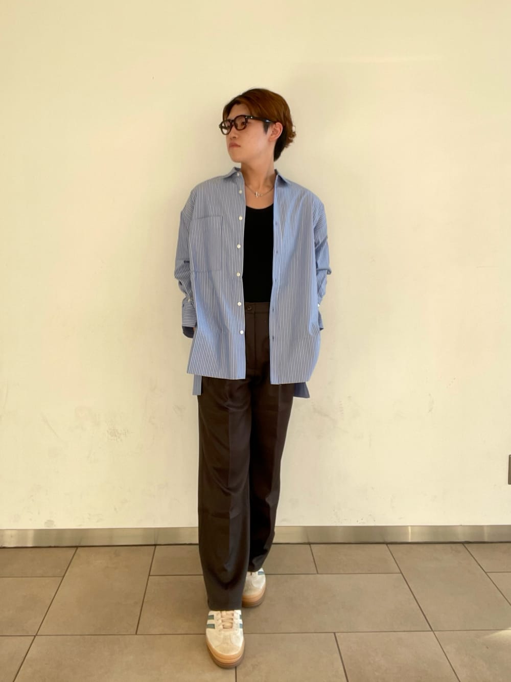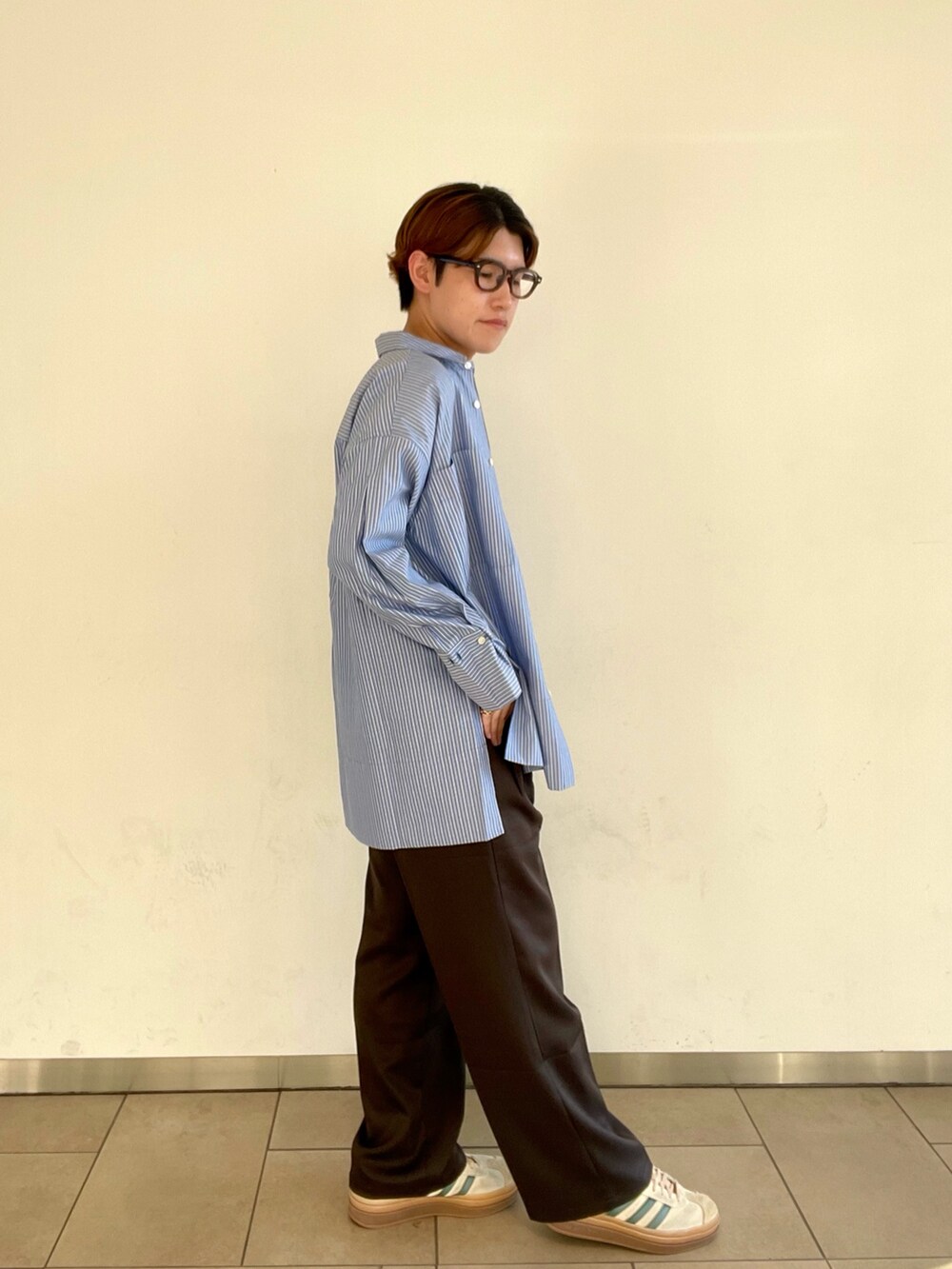 シャツはルーズシルエットで生地もしっかりしているので着膨れせずに着用いただけます👍