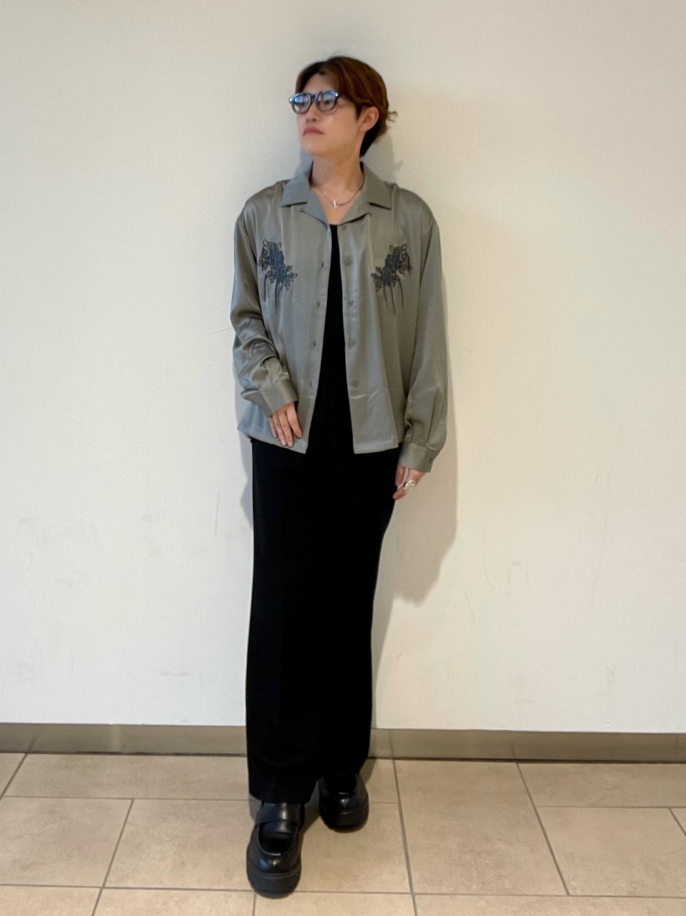 光沢のあるサテン生地を使用した、ボタニカル刺繍がポイントのシャツはとても軽く着心地がよくストレスなく着用いただけます👍