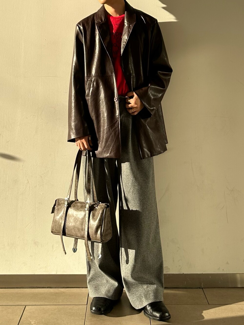 SENSE OF PLACEフェイクレザーミドルジャケット