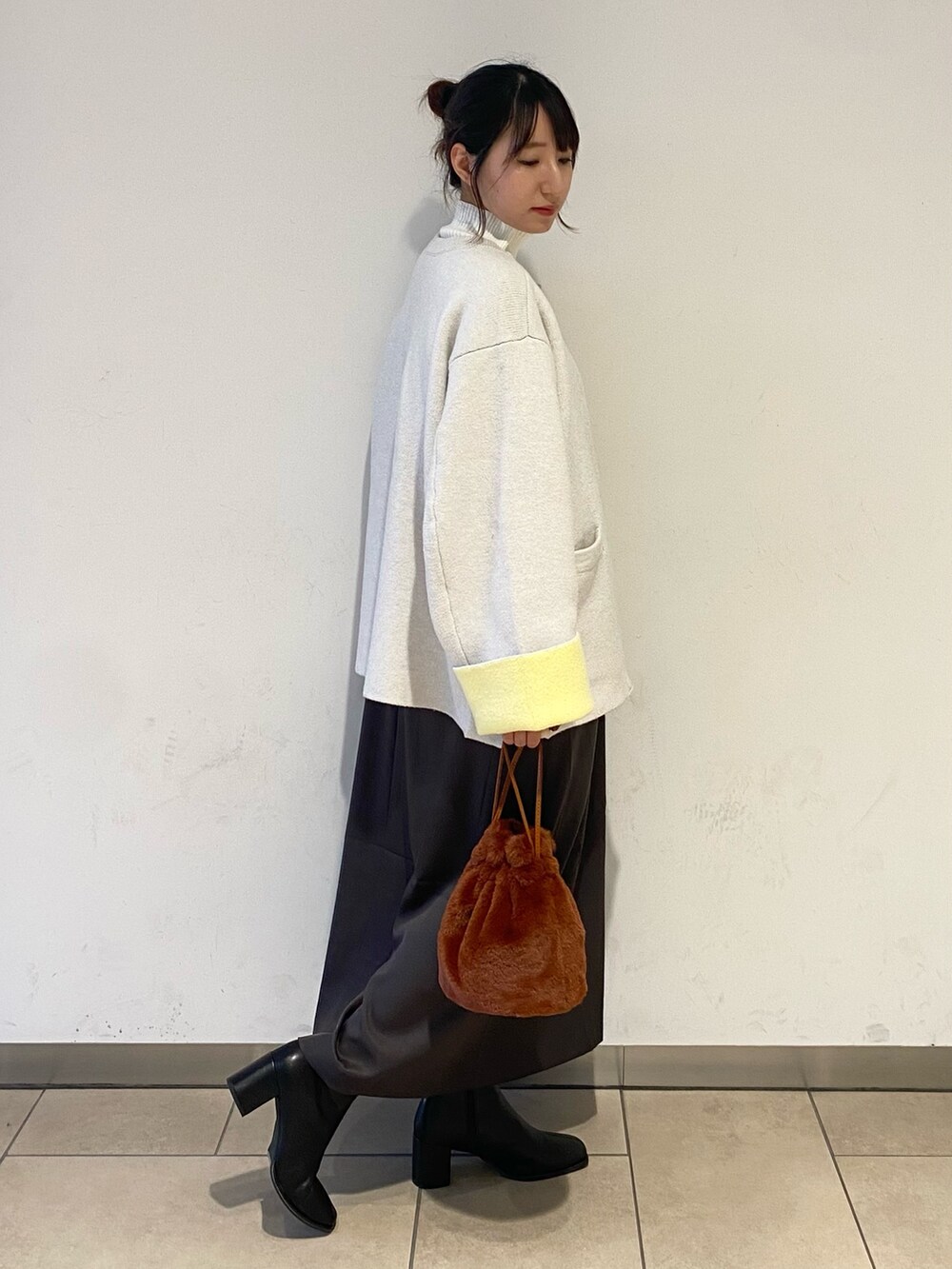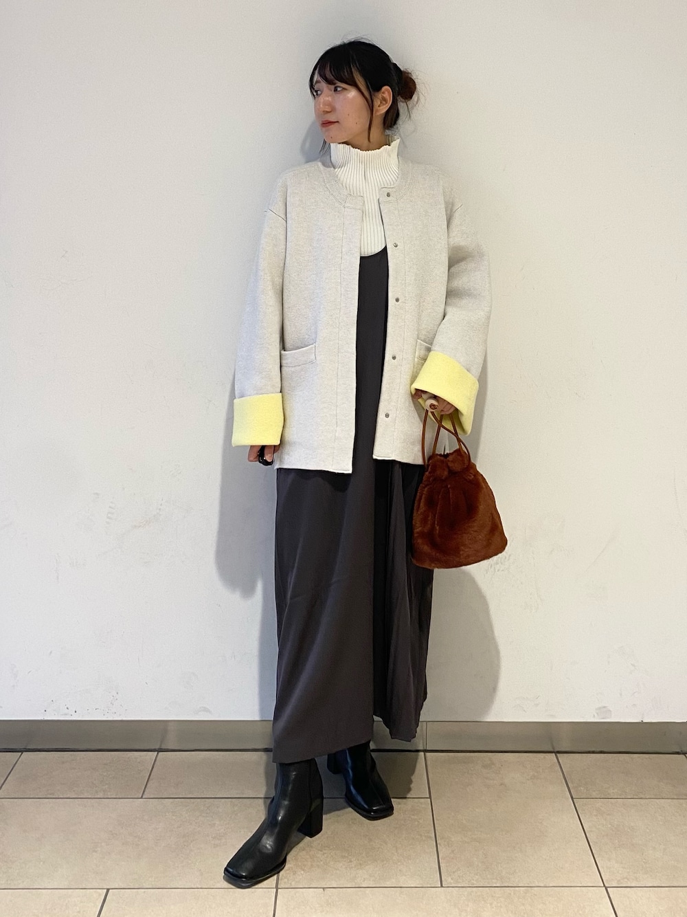 ニットコートはバイカラーで折り返しの色が差し色になって可愛いです!