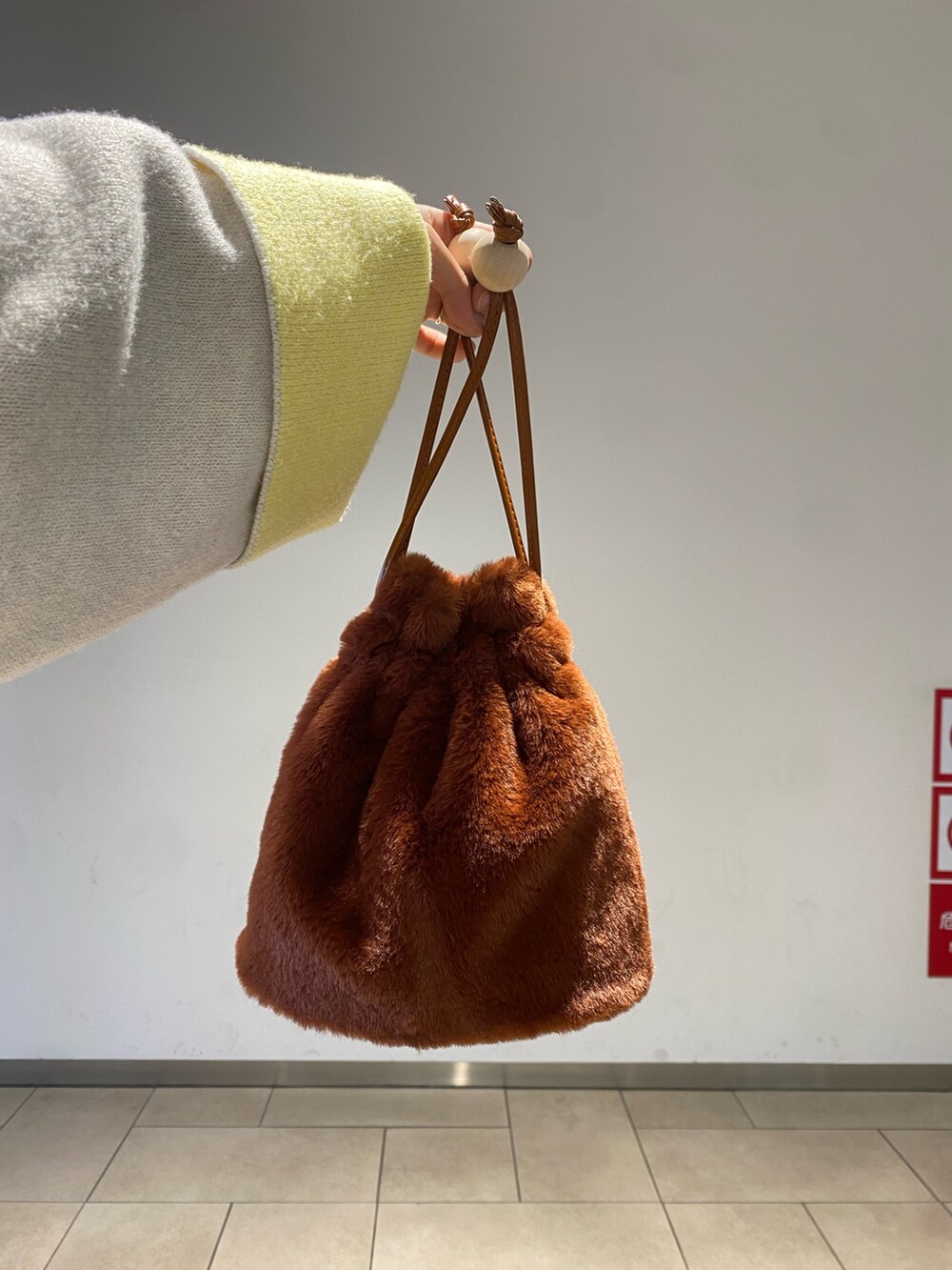ウッドボールキンチャクファーバッグ