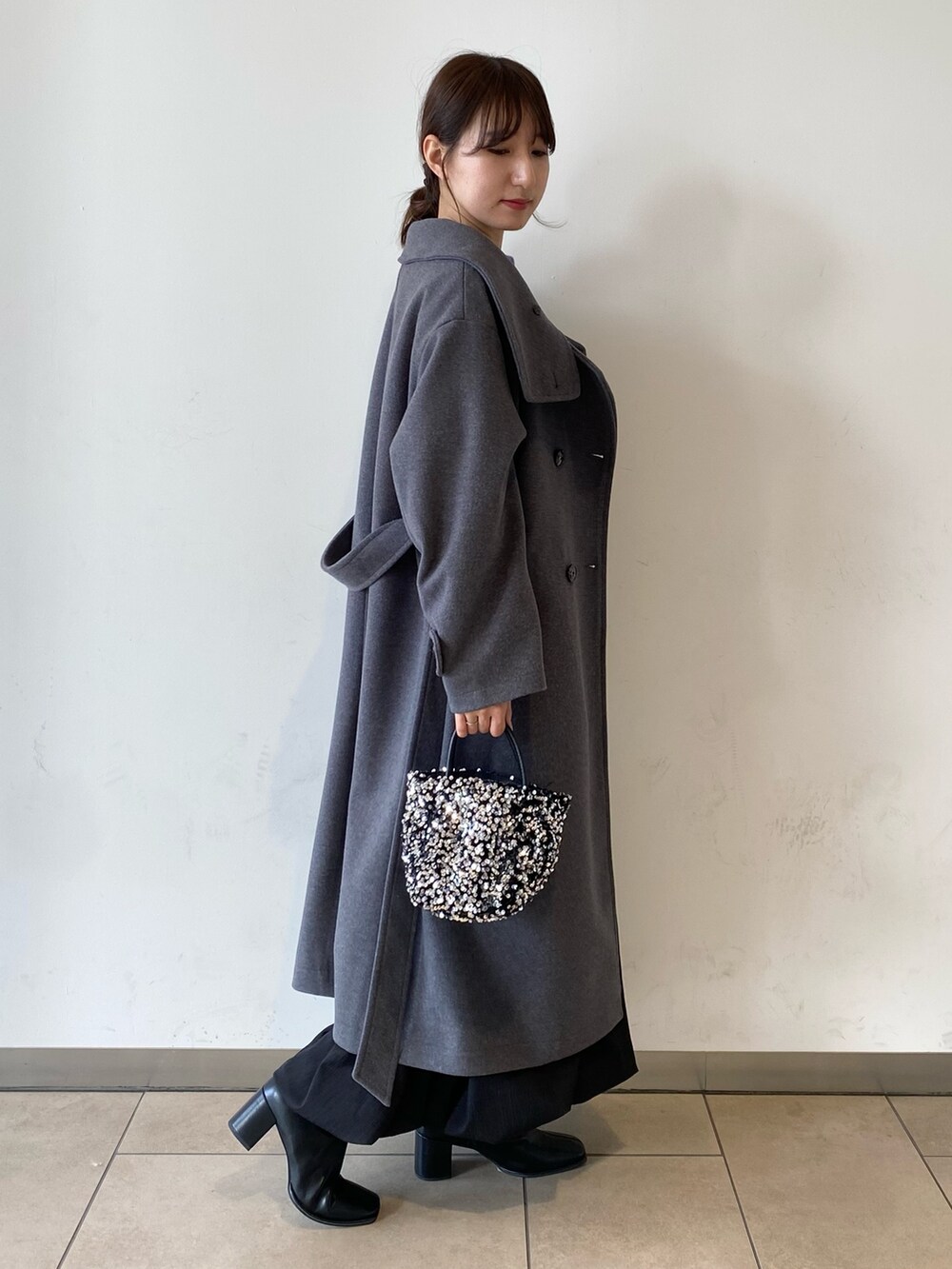 着用しているグレーは仕事でも使えて着回し抜群です!