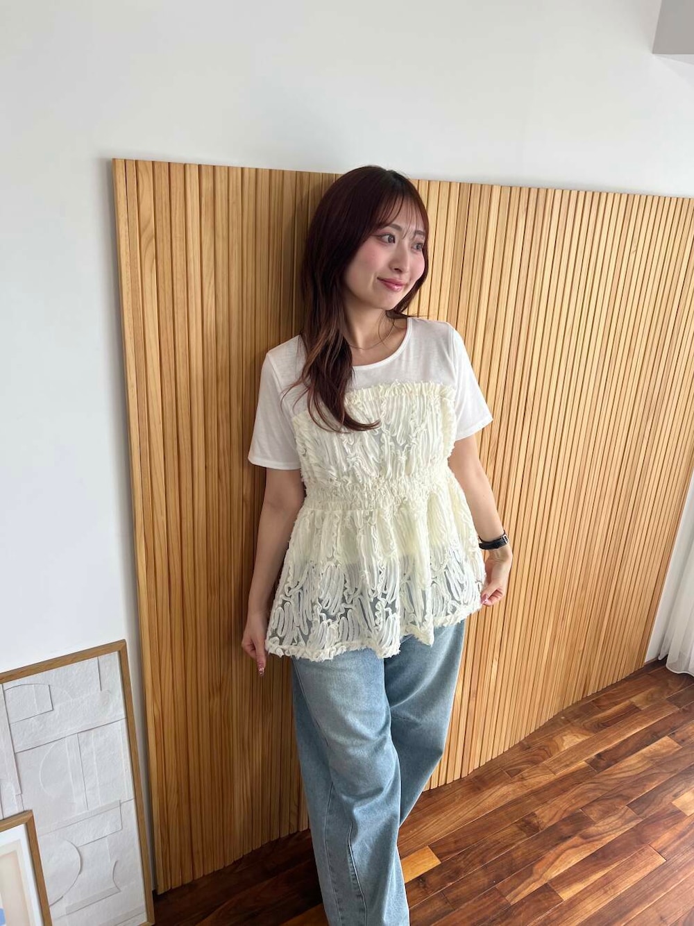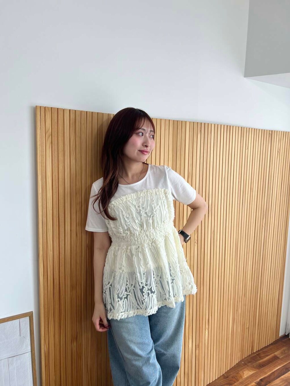 今の時期はジャケットやカーディガンの下に、夏は1枚で着られるアイテムです◎