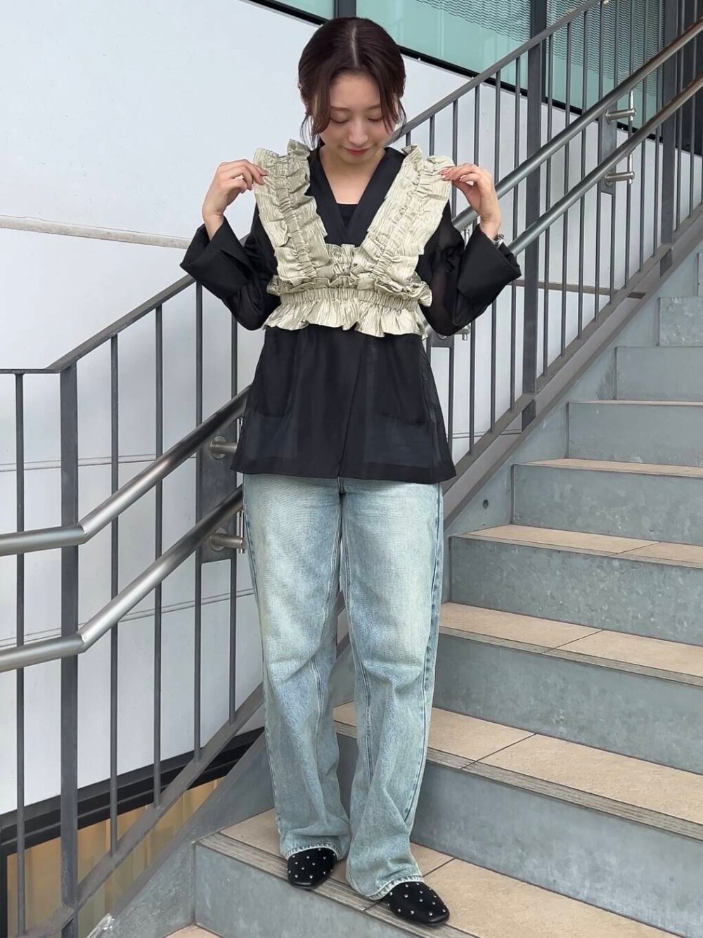 ジャケットを羽織ではなくシアートップスとしてビスチェに合わせてみました!