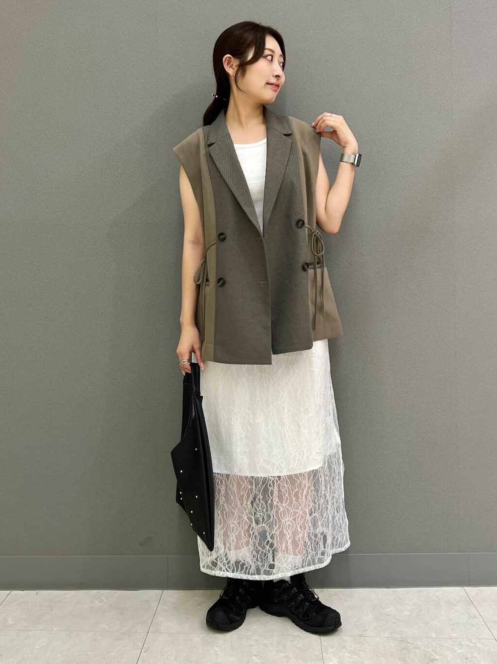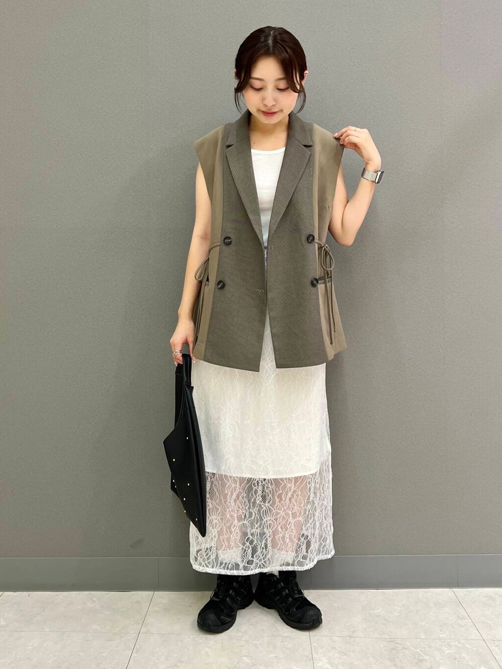 レースの透け感あるスカートと合わせて大人っぽくしました◎