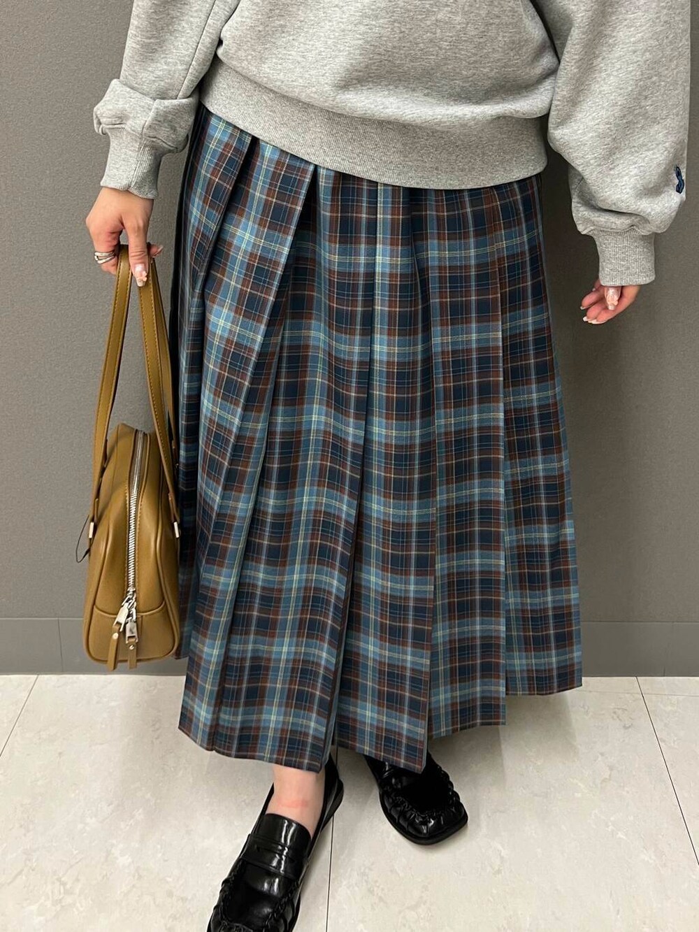 エンジェルブルーのスウェットに新作のチェックプリーツスカート合わせました◎