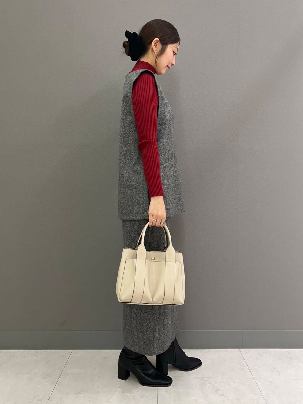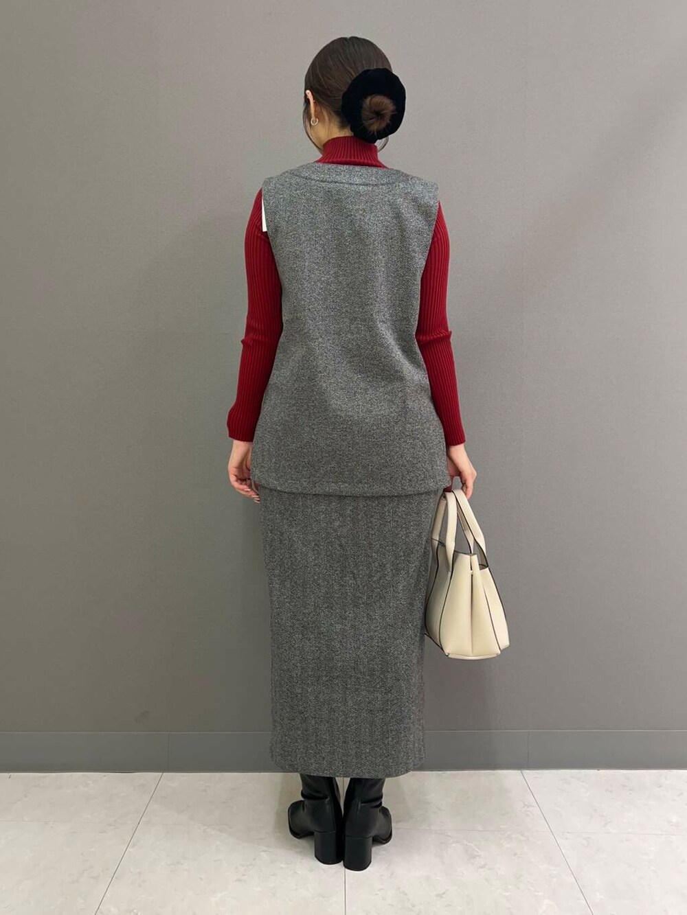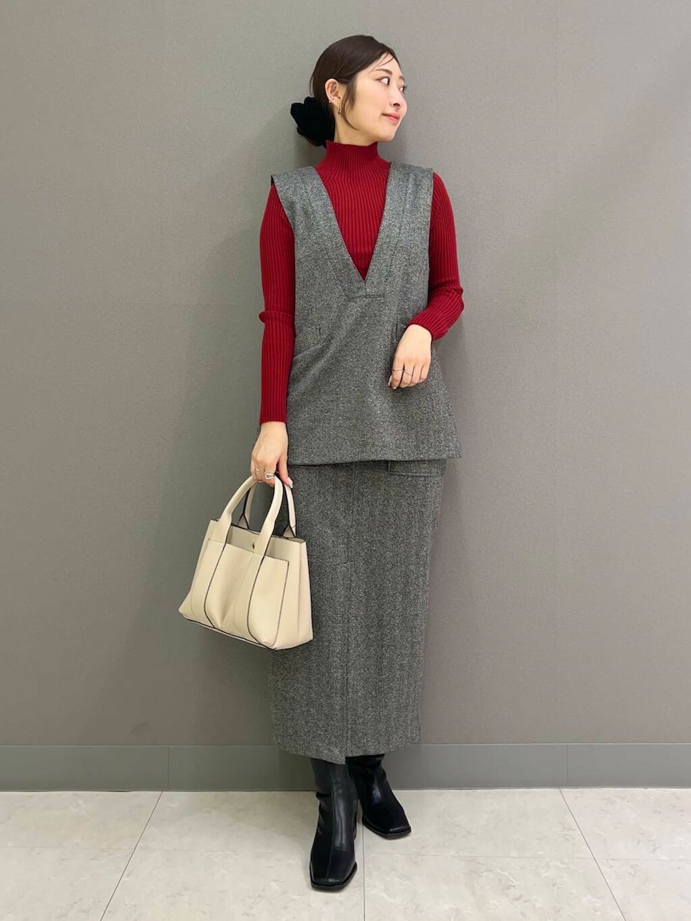 別々でも着回しやすいアイテムですがセットアップで合わせるとかっちりし過ぎずカジュアル過ぎず、オフィスにも丁度良いコーデに◎